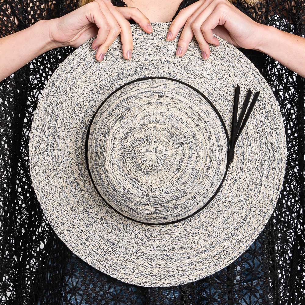 Mixed Braid Packable Sun Hat With Suede Band