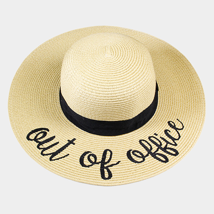 "Out of Office" Embroidery Straw Floppy Sun Hat