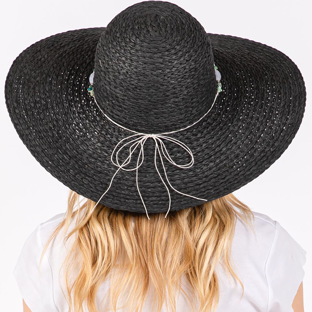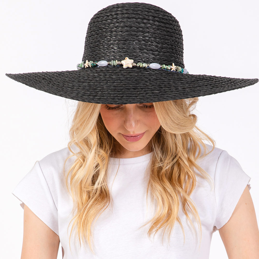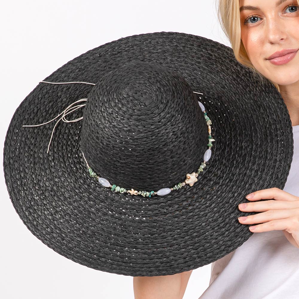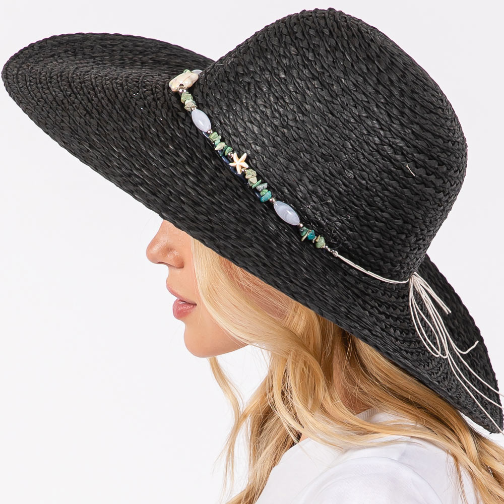 Wide Brim Floppy Sun Hat with Turquoise Stone and Starfish Band