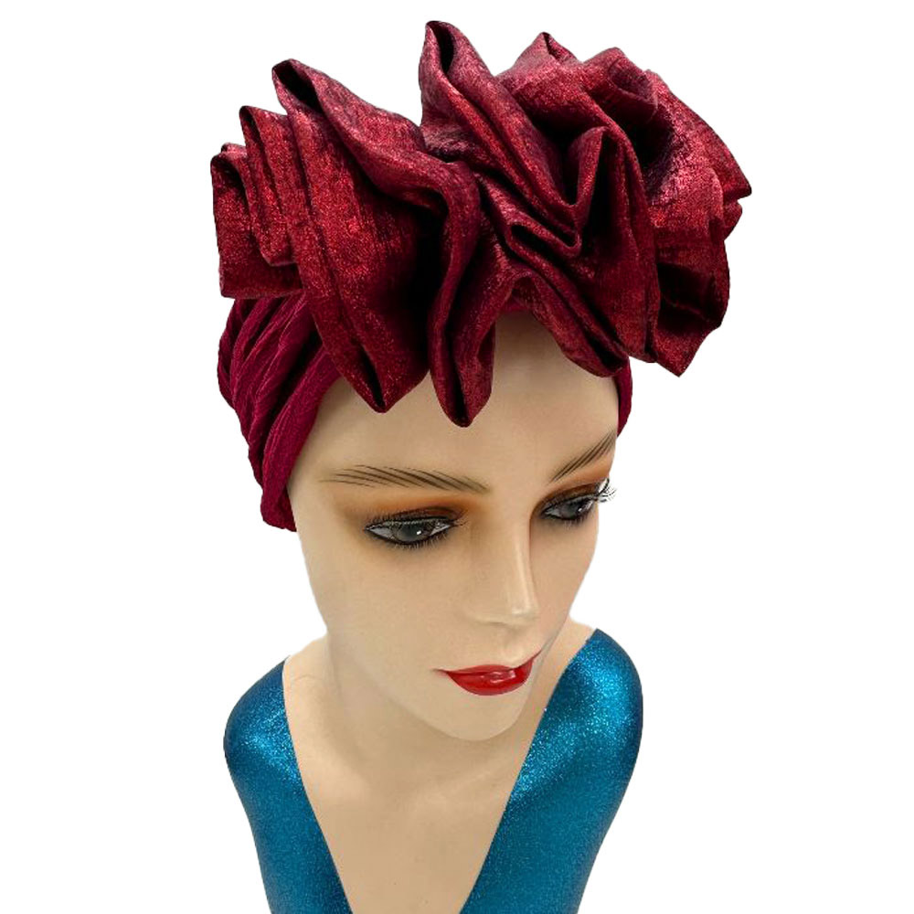 • This elegant ruffled statement headwrap adds dramatic flair and sophistication to any outfit. Designed with voluminous layered detailing, it offers a bold, sculpted silhouette perfect for special occasions, cultural events, or elevating everyday fashion with timeless grace.