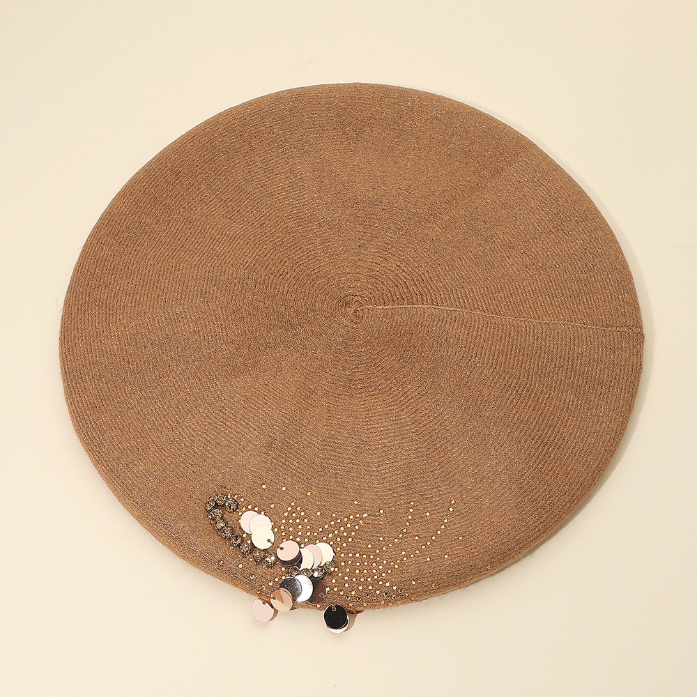 Decorative Sequin Rhinestone Embellished Winter Beret Hat