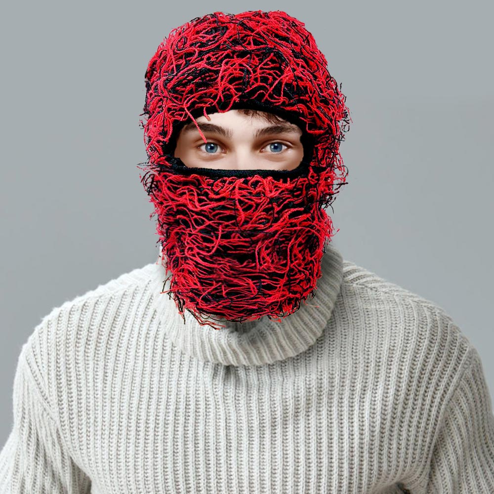 Distressed Fuzzy Winter Balaclava Mask Hat