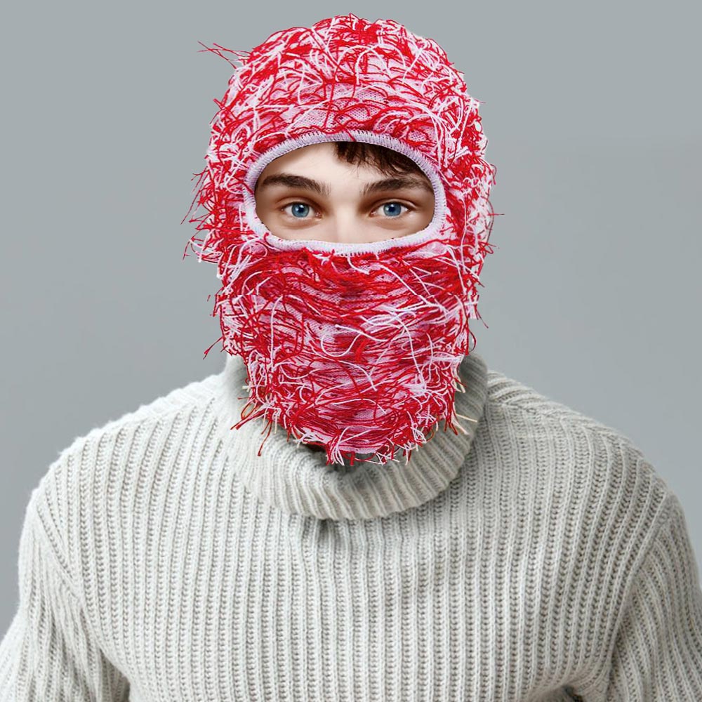 Distressed Fuzzy Winter Balaclava Mask Hat