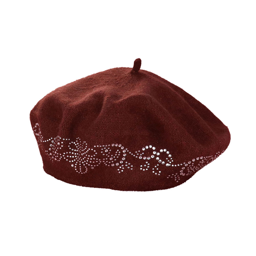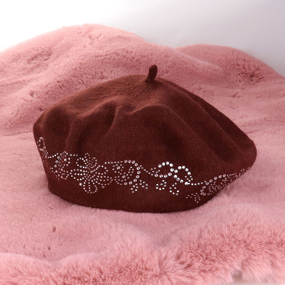 Flower Bling Studded Beret Hat
