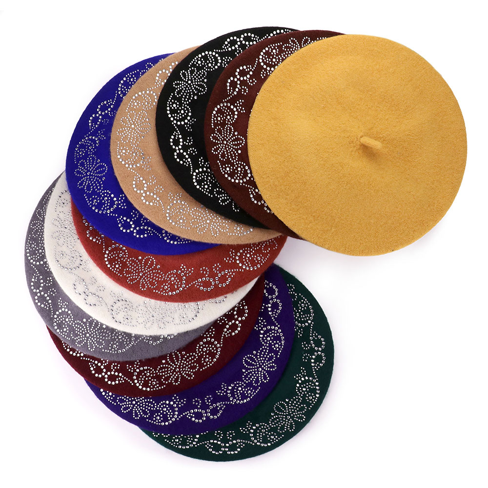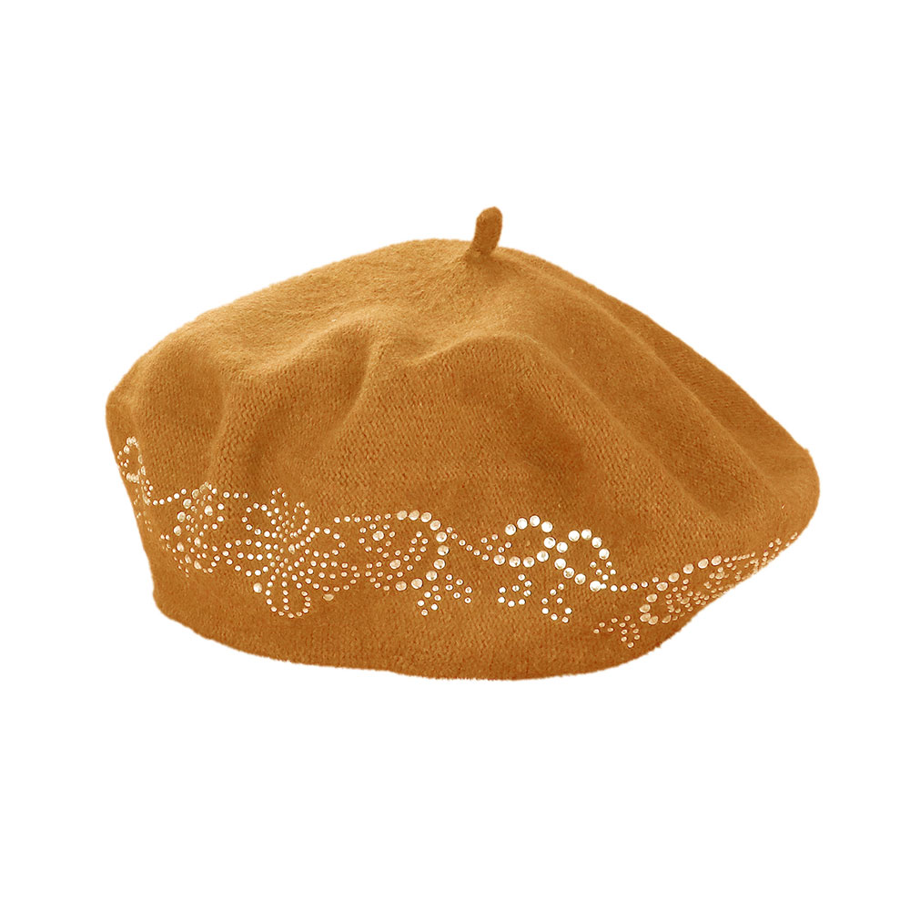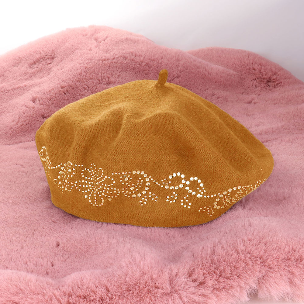 Flower Bling Studded Beret Hat