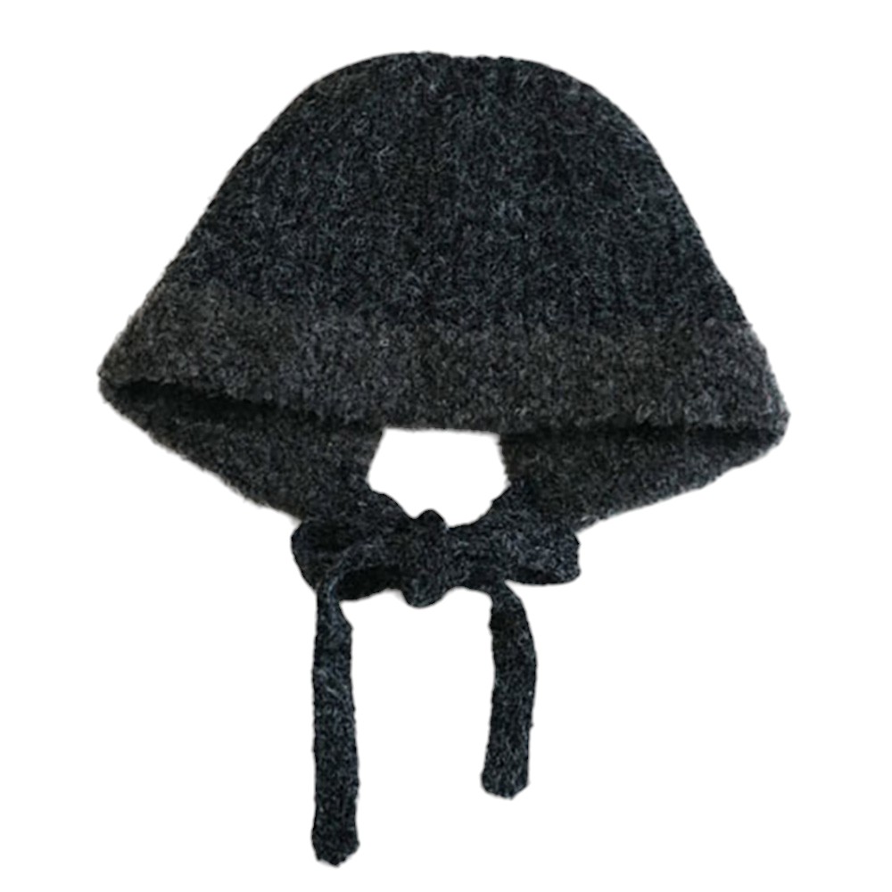 Details • Size : One Size • Material : 8% Wool, 21% Nylon, 70% Polyester, 1% Spandex • Stay warm and chic with this knit bonnet hat featuring a soft ribbed design, cozy lined interior, and adjustable tie closure under the chin. Perfect for cold-weather outings, this stylish winter cap combines vintage charm with modern comfort, making it a versatile accessory for seasonal wear.