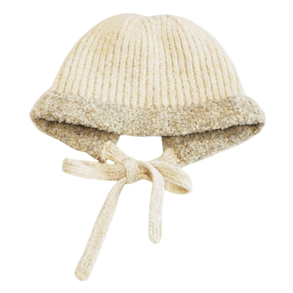 Details • Size : One Size • Material : 8% Wool, 21% Nylon, 70% Polyester, 1% Spandex • Stay warm and chic with this knit bonnet hat featuring a soft ribbed design, cozy lined interior, and adjustable tie closure under the chin. Perfect for cold-weather outings, this stylish winter cap combines vintage charm with modern comfort, making it a versatile accessory for seasonal wear.
