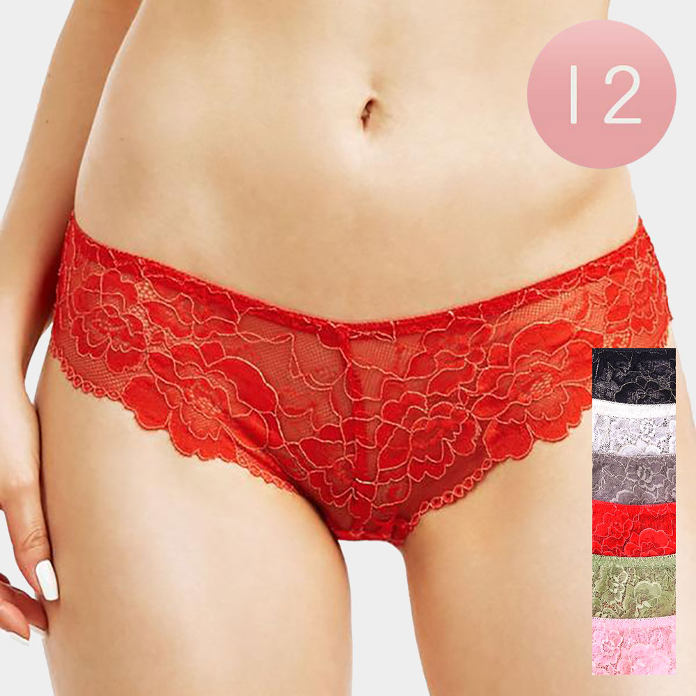 12PCS - Ladies Flower Laced Bikini Panties