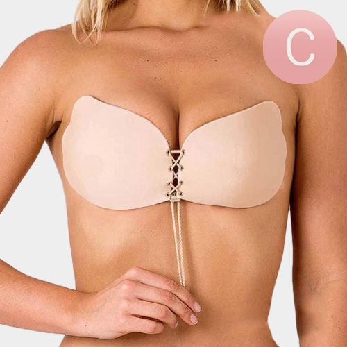 Details • Size : C-CUP, Approx 12" X 4.5" • Push Up • Drawstring • Get secure lift and cleavage with this lace-up strapless adhesive bra in Size C. Designed for comfort and invisibility under outfits, it provides push-up support and a natural shape, perfect for backless, strapless, and special occasion wear.