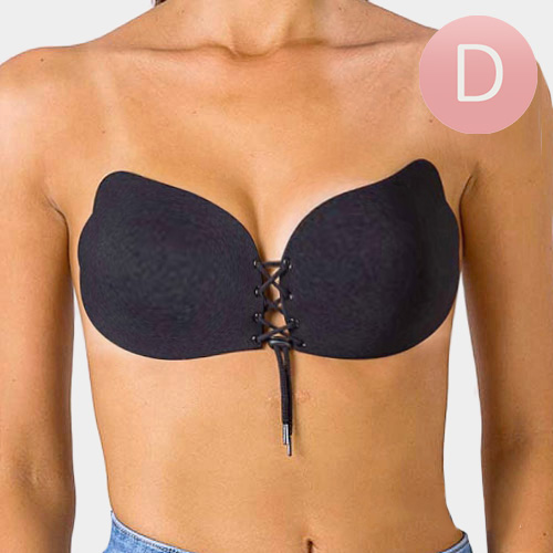 Details • Size : D-CUP, Approx 12" X 5" • Push Up • Drawstring • Get secure lift and cleavage with this lace-up strapless adhesive bra in Size D. Designed for comfort and invisibility under outfits, it provides push-up support and a natural shape, perfect for backless, strapless, and special occasion wear.