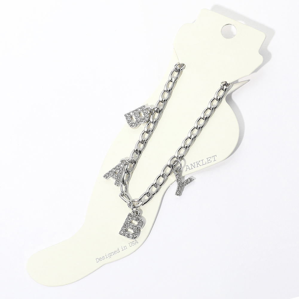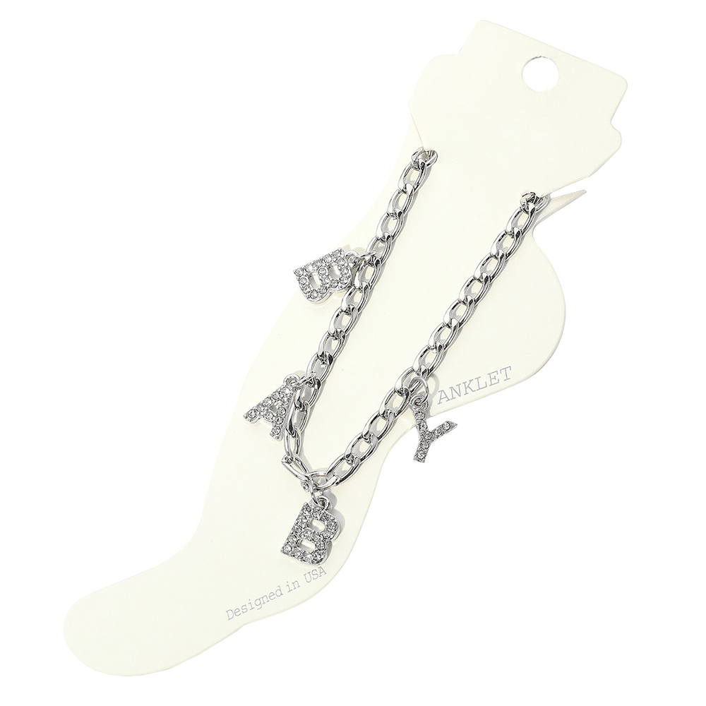 BABY Rhinestone Embellished Charm Message Anklet