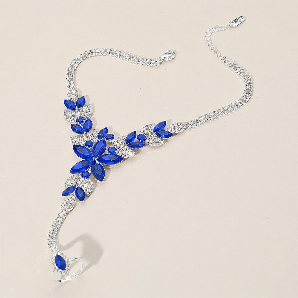 Teardrop Glass Stone Cluster Station Evening Necklace