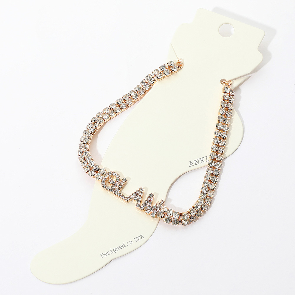 Metal VOTE Initial Message Station Rhinestone Chain Necklace