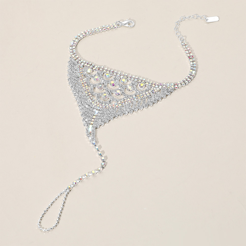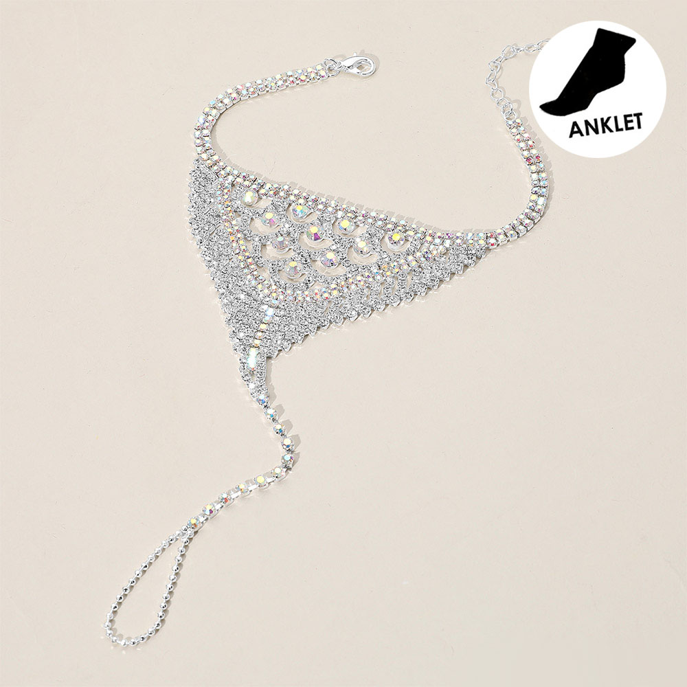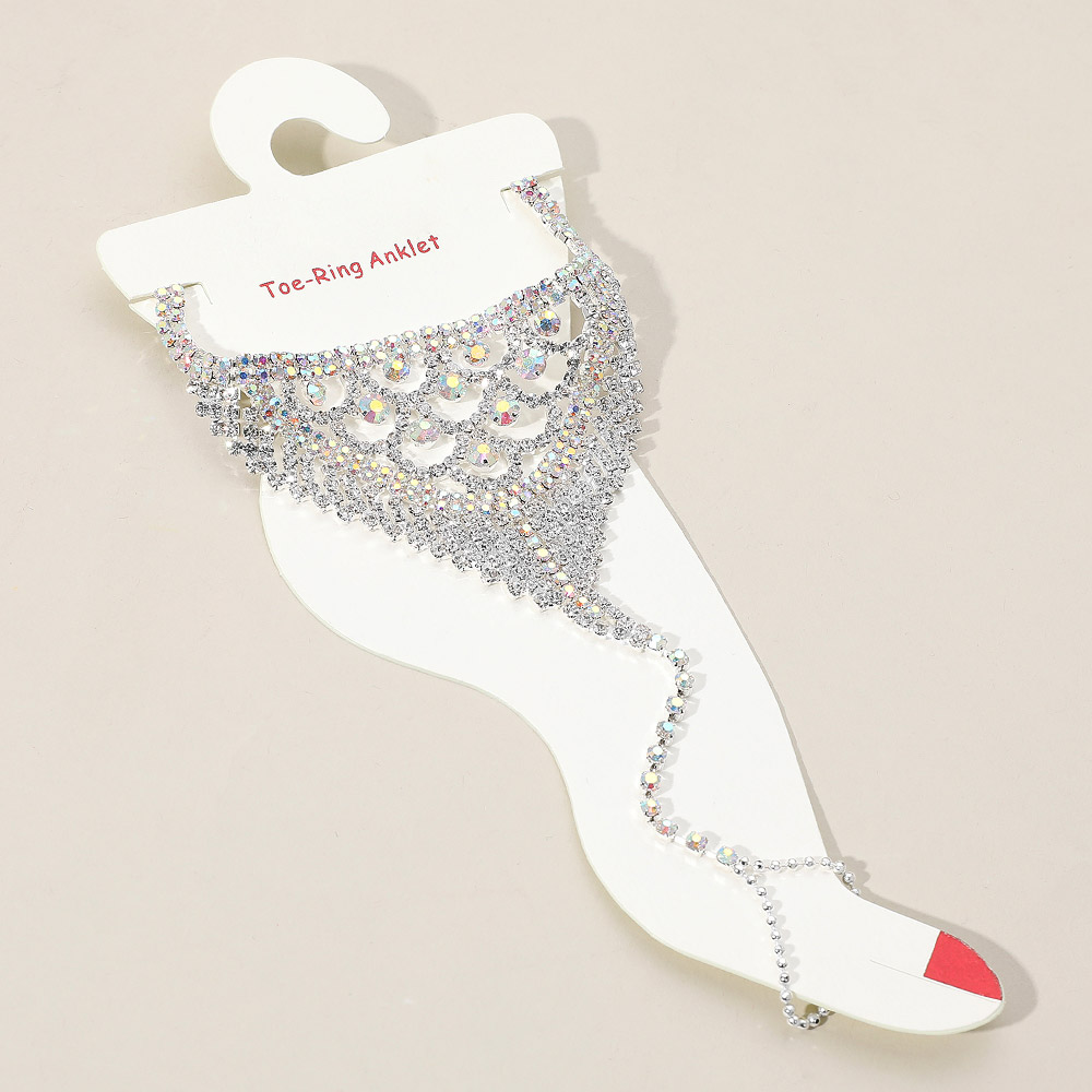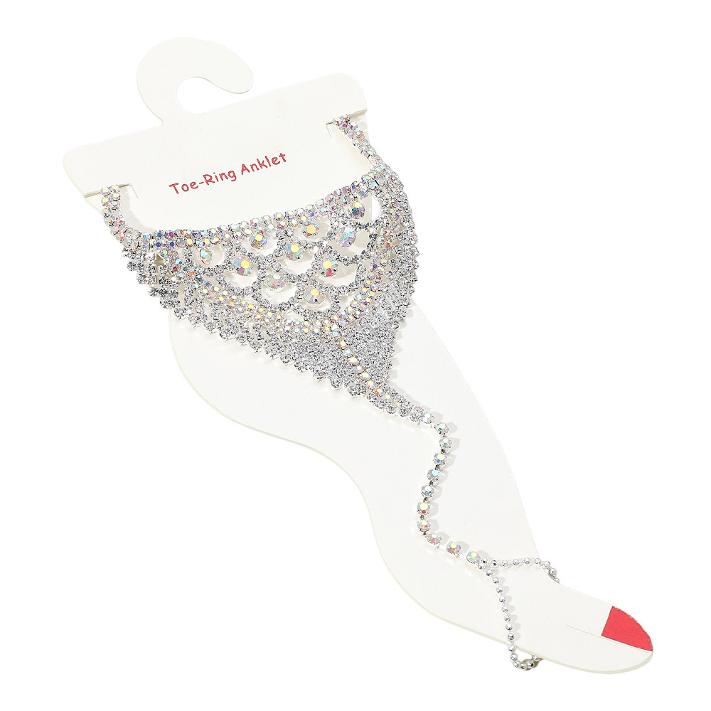 Round Stone Accented Rhinestone Net Toe Ring Evening Anklet