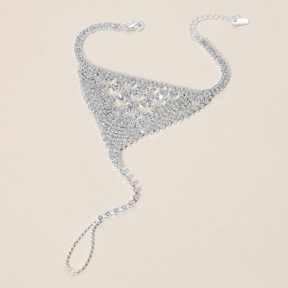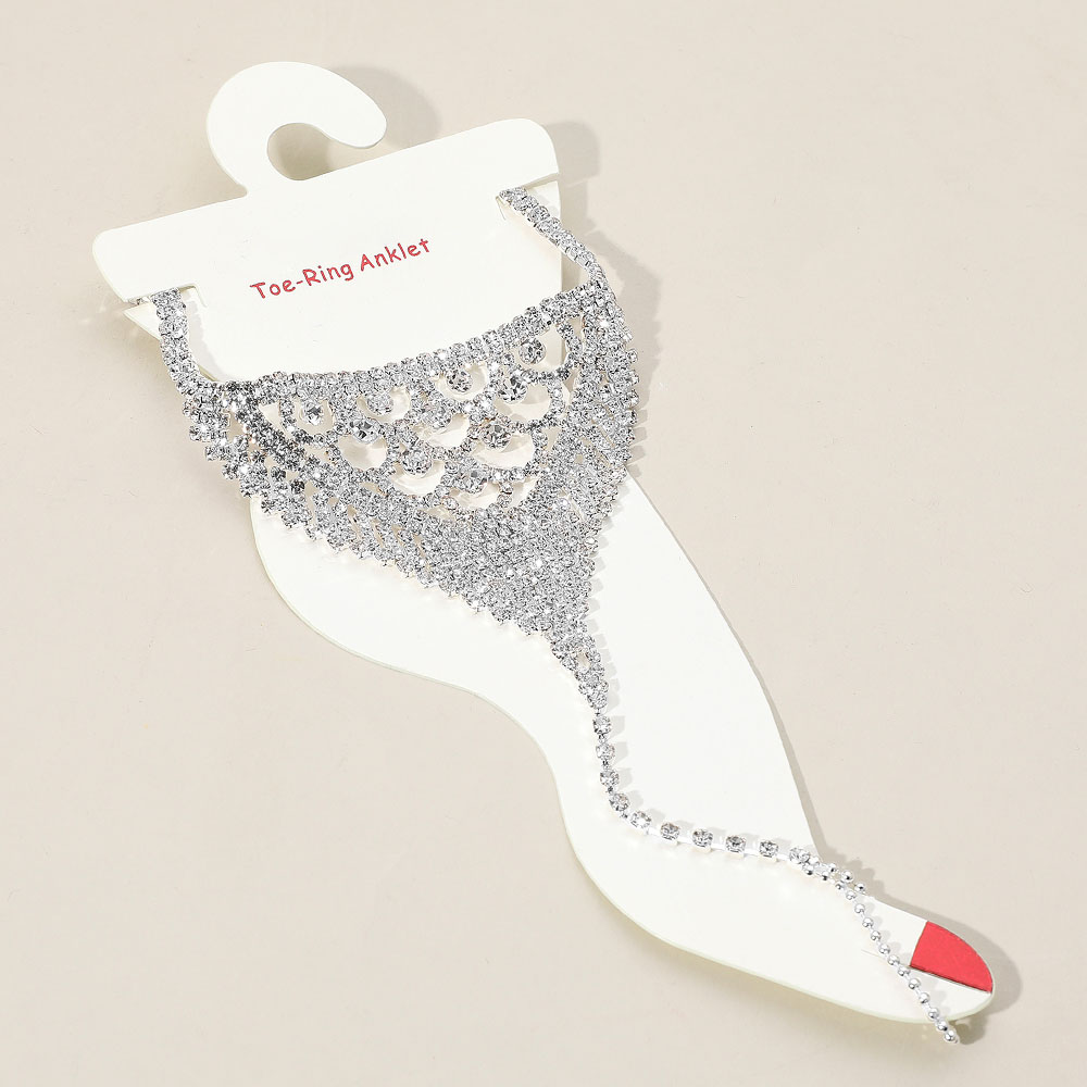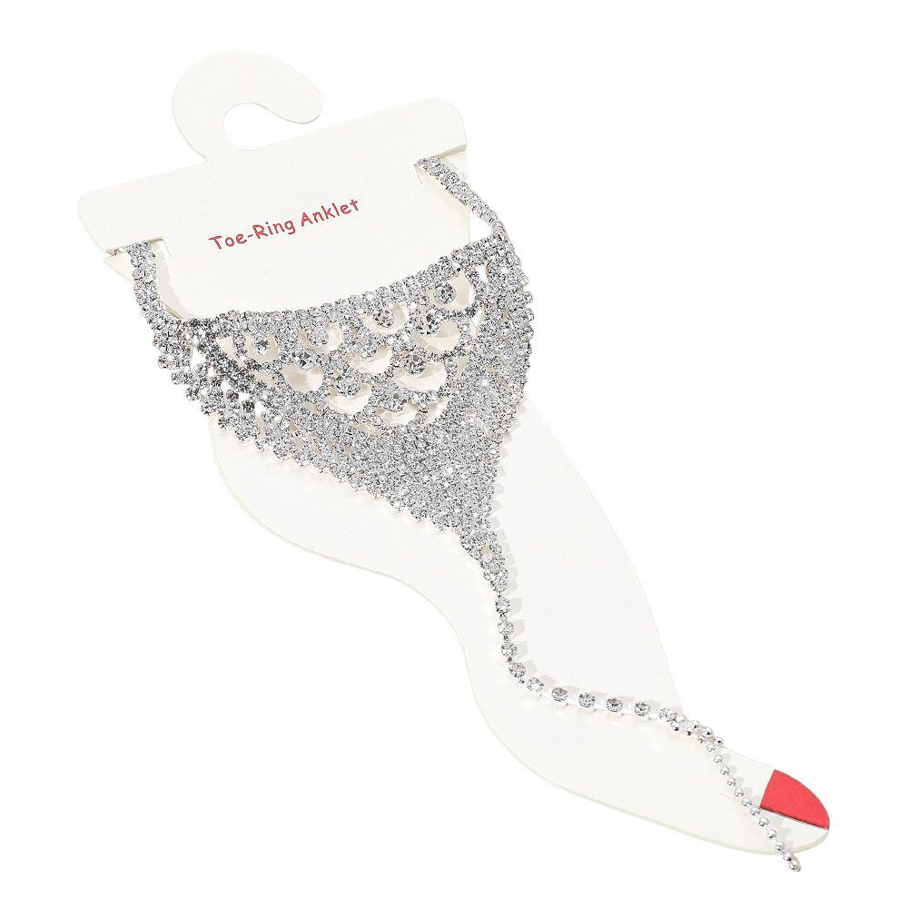 Round Stone Accented Rhinestone Net Toe Ring Evening Anklet