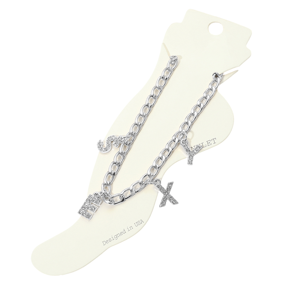 SEXY Rhinestone Embellished Charm Message Anklet