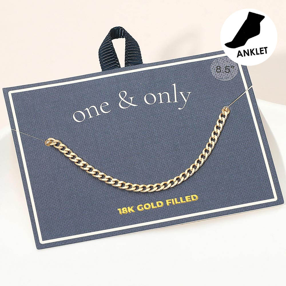 Details • Size : 0.1" H (3mm), 8.5" L • Lobster Clasp • Timeless Cuban chain anklet featuring smooth flat links with a sleek polished shine. Its classic design offers effortless sophistication, perfect for daily wear or layering with other pieces. A versatile accessory that adds a refined touch to any modern or classic look. • Gold Filled • Lead and Nickel Compliant • Made In Brazil