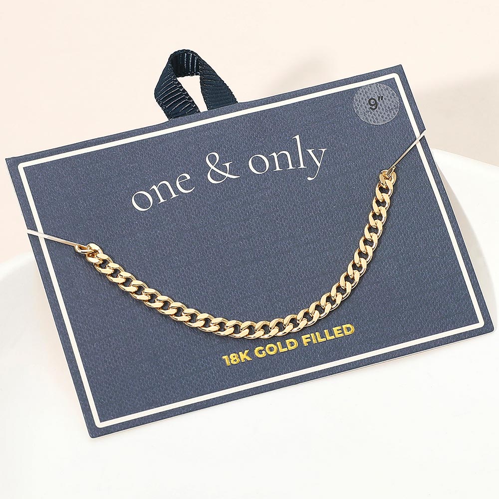 Details • Size : 0.2" H (4mm), 9" L • Lobster Clasp • Timeless Cuban chain anklet featuring smooth flat links with a sleek polished shine. Its classic design offers effortless sophistication, perfect for daily wear or layering with other pieces. A versatile accessory that adds a refined touch to any modern or classic look. • Gold Filled • Lead and Nickel Compliant • Made In Brazil
