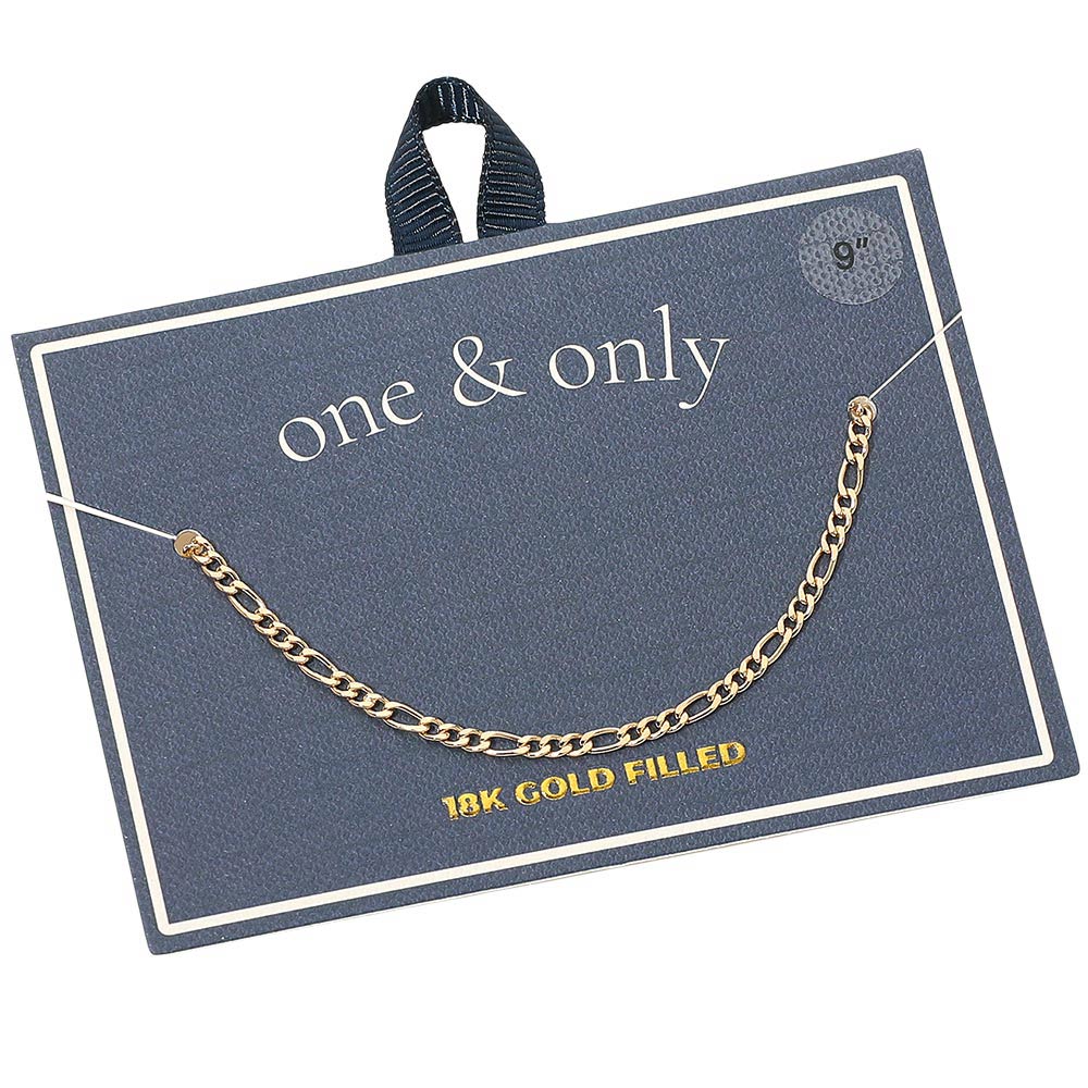 Details • Size : 0.1" H (2mm), 9" L • Lobster Clasp Closure • Classic figaro chain anklet designed with smooth, interlocking links for a timeless and polished look. Crafted for durability and shine, this 18K gold-filled anklet is perfect for daily wear or layering, adding effortless elegance to your casual or dressy outfits. • Gold Filled • Lead and Nickel Compliant • Made In Brazil