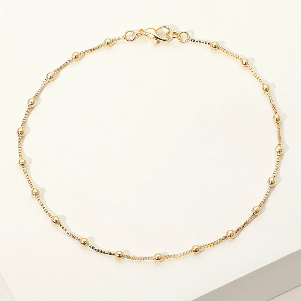 18K Gold Filled Dainty Beaded Station Chain Anklet