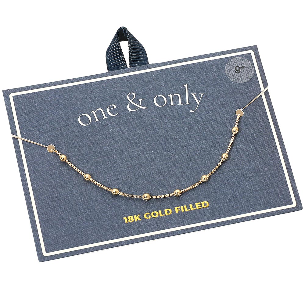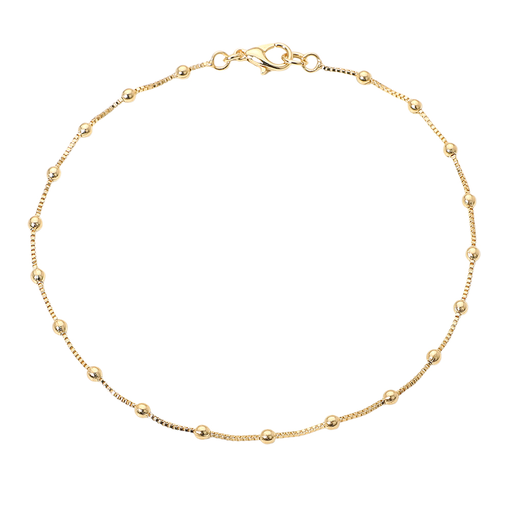 Details • Size : 0.1" H, 9" L • Lobster Clasp Closure • Chic beaded station anklet featuring evenly spaced polished beads on a fine chain for a refined, feminine finish. Perfect for layering or wearing solo, this minimalist anklet adds a graceful touch of shine to any casual or dressy outfit. • Gold Filled • Lead and Nickel Compliant • Made In Brazil