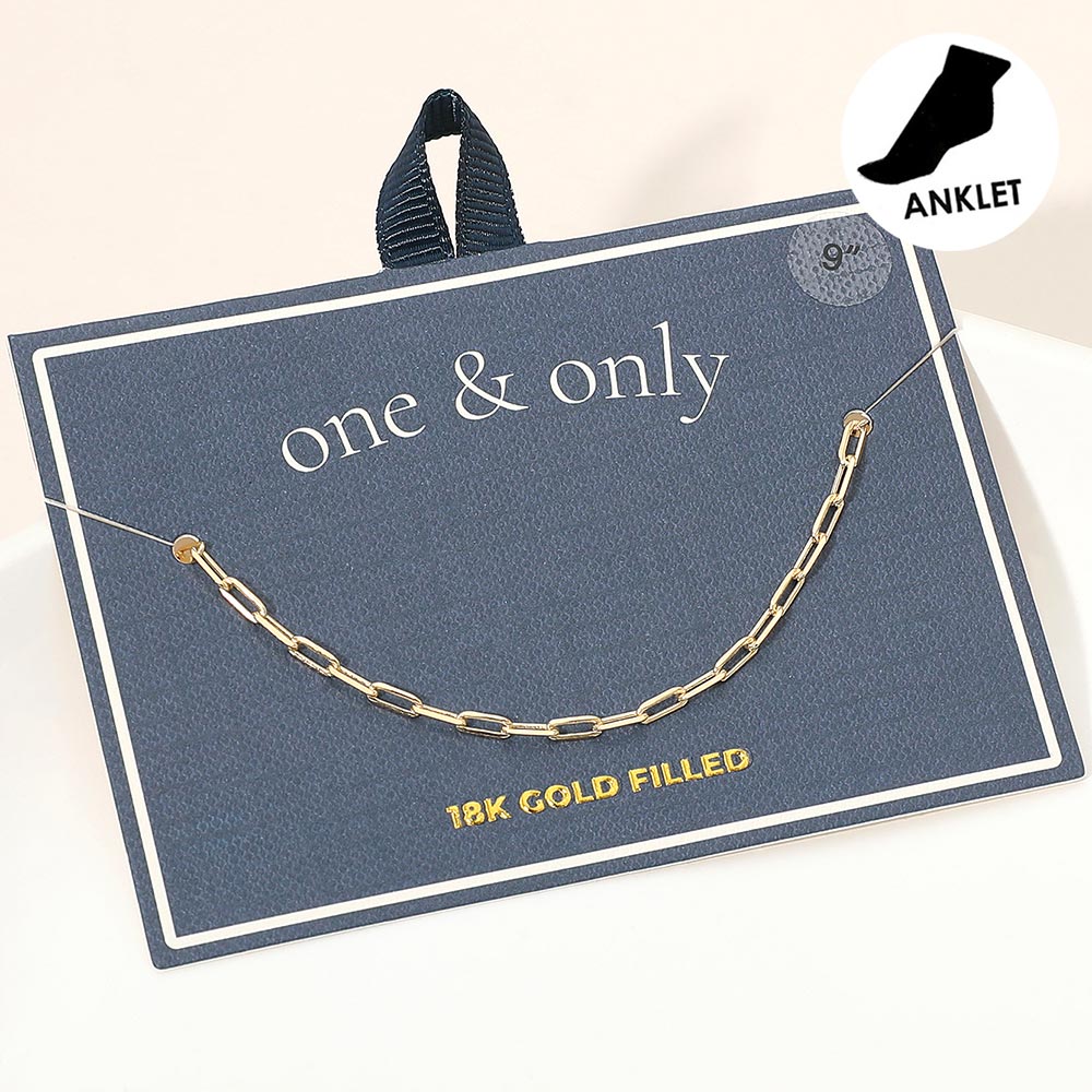 Details • Size : 0.1" H (2mm), 9" L • Lobster Clasp Closure • Sleek rectangular paperclip link chain anklet with a polished modern design that complements any style. Ideal for everyday wear or layering, this minimalist anklet adds a refined touch of elegance and sophistication to your casual and dressy looks alike. • Gold Filled • Lead and Nickel Compliant • Made In Brazil