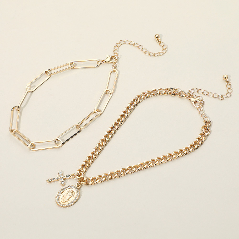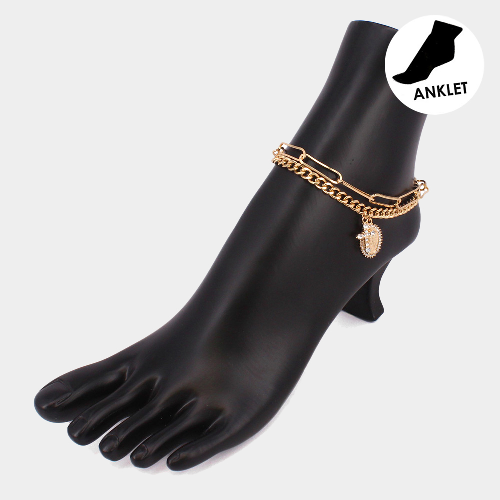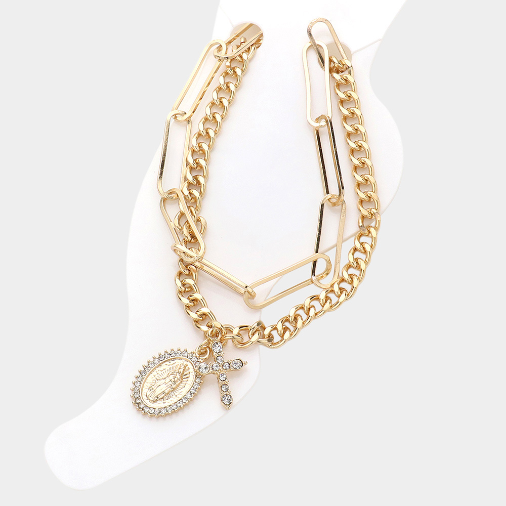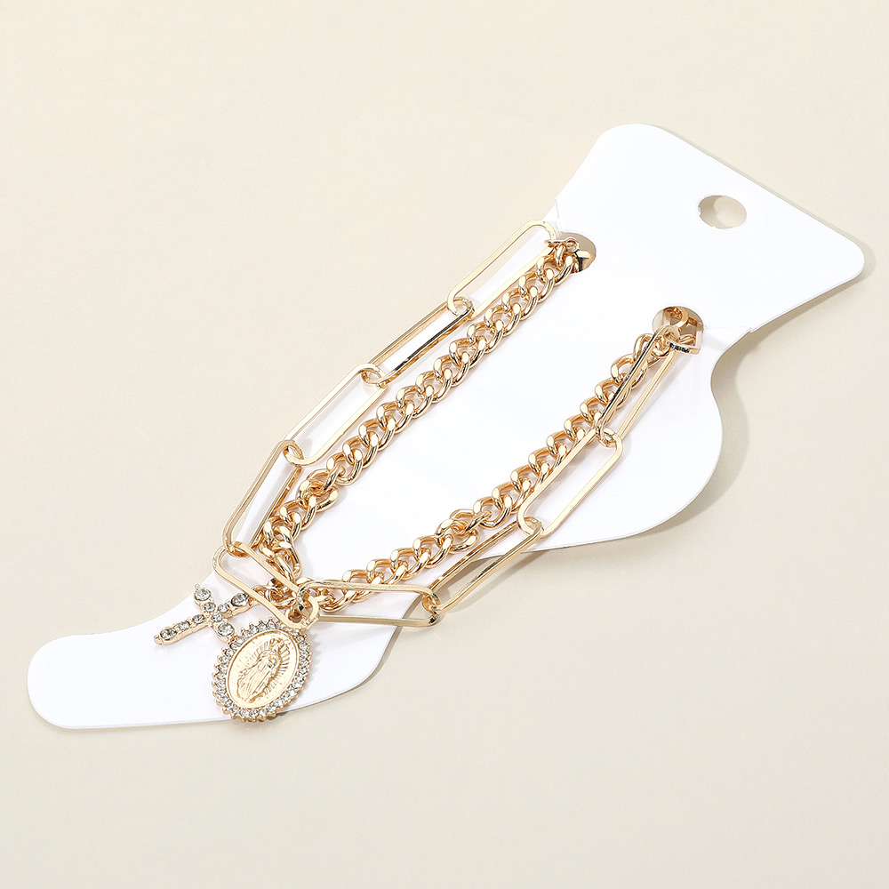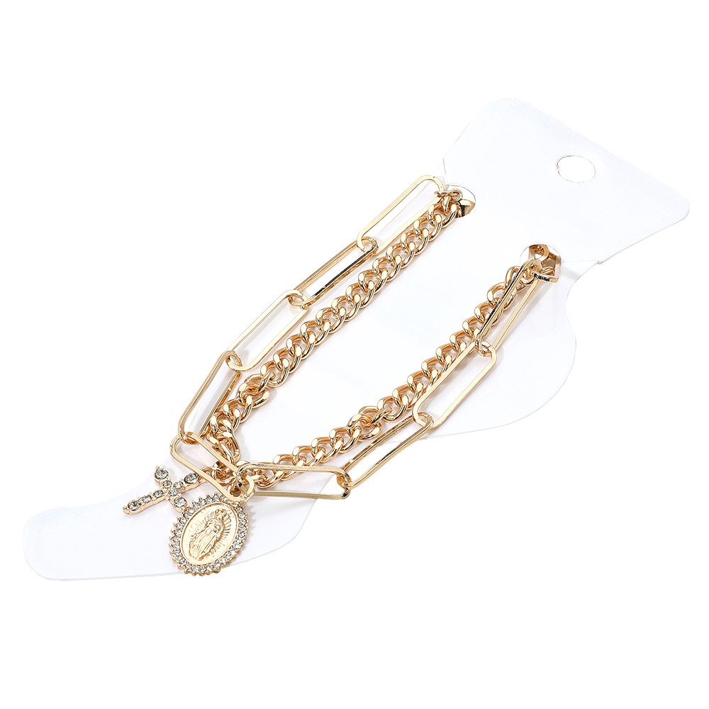 2PCS - Rhinestone Cross Virgin Mary Charm Anklets