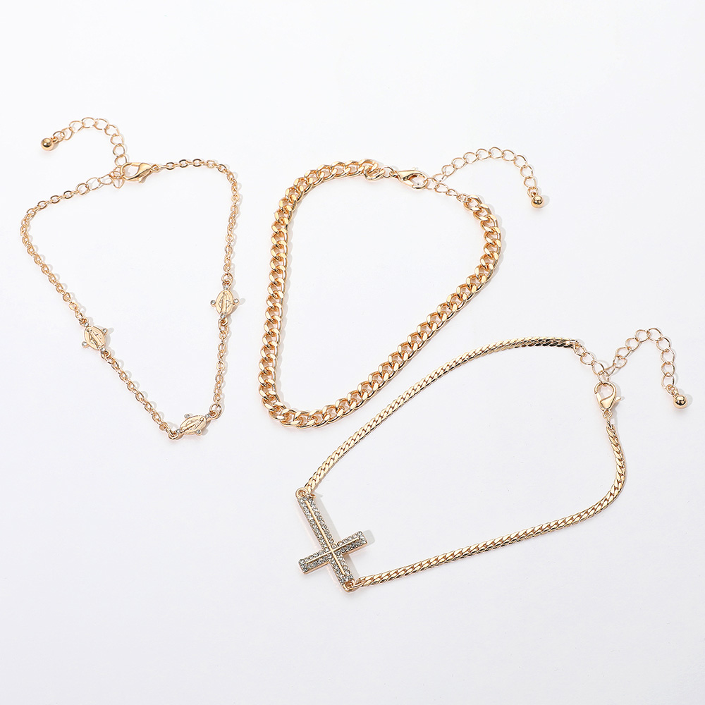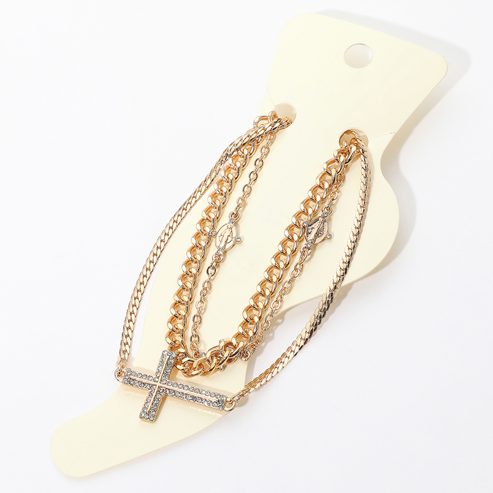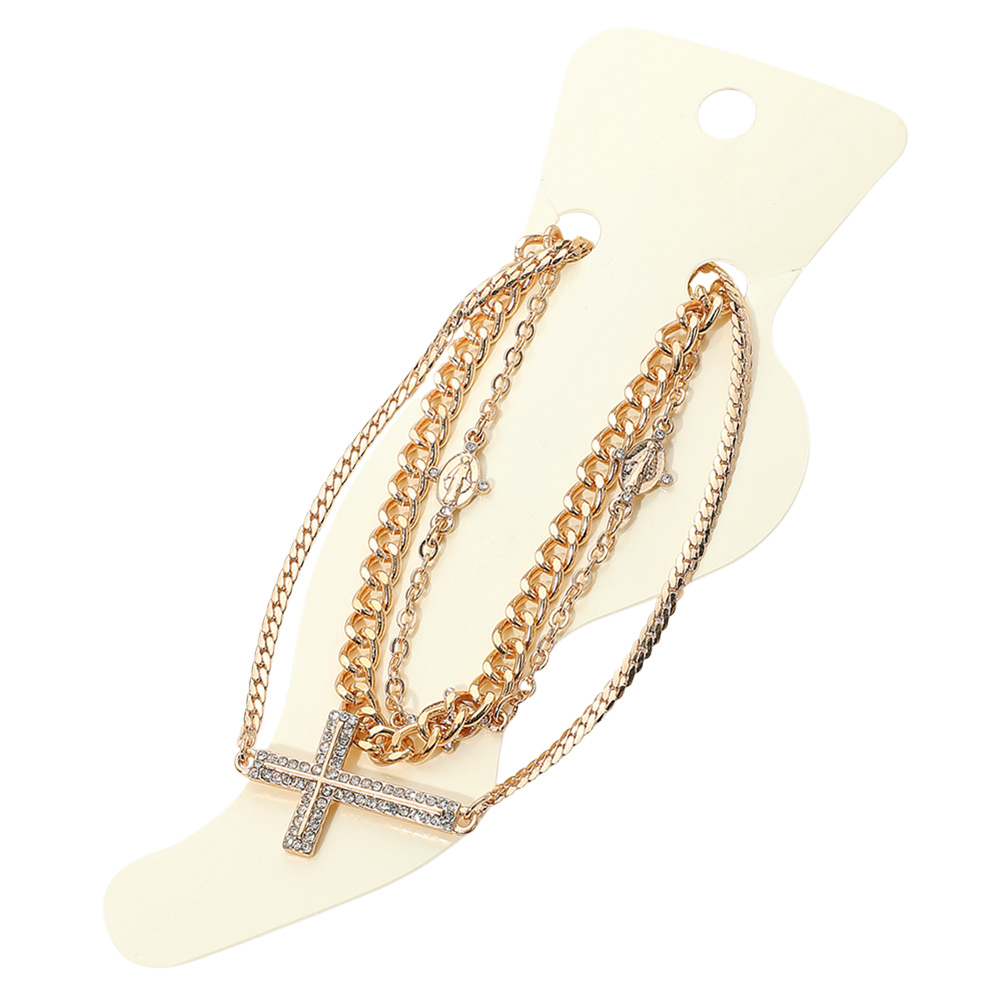 3PCS - Rhinestone Embellished Cross Virgin Mary Anklets