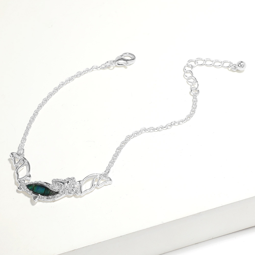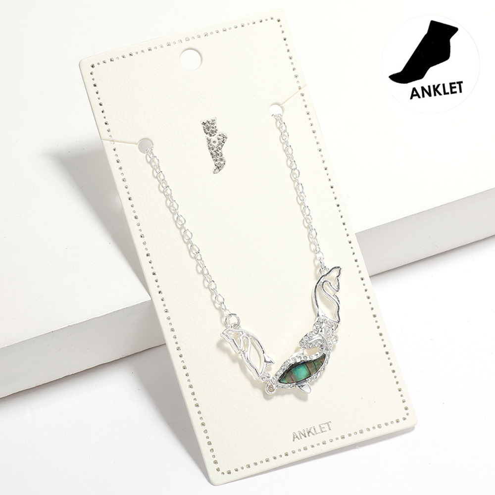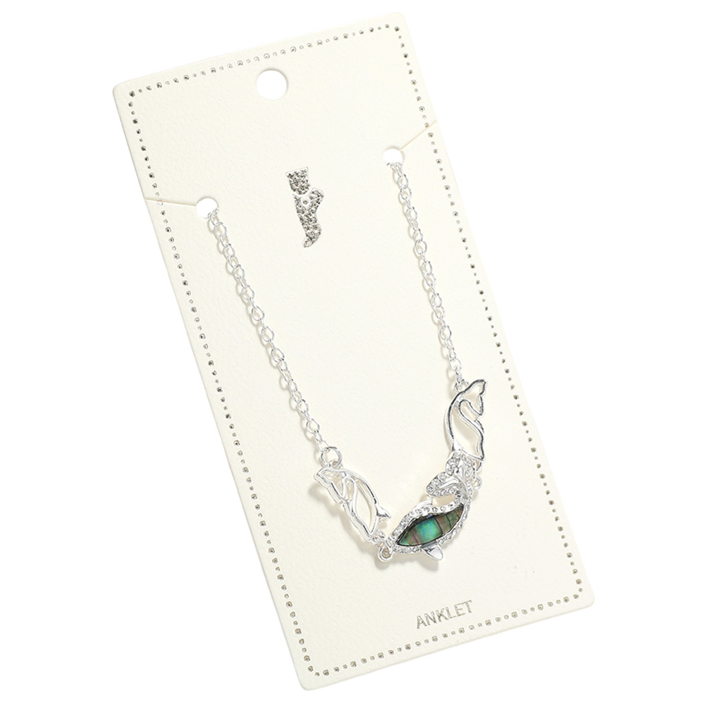 Stone Paved Abalone Sea Glass Dolphin Dangle Earrings
