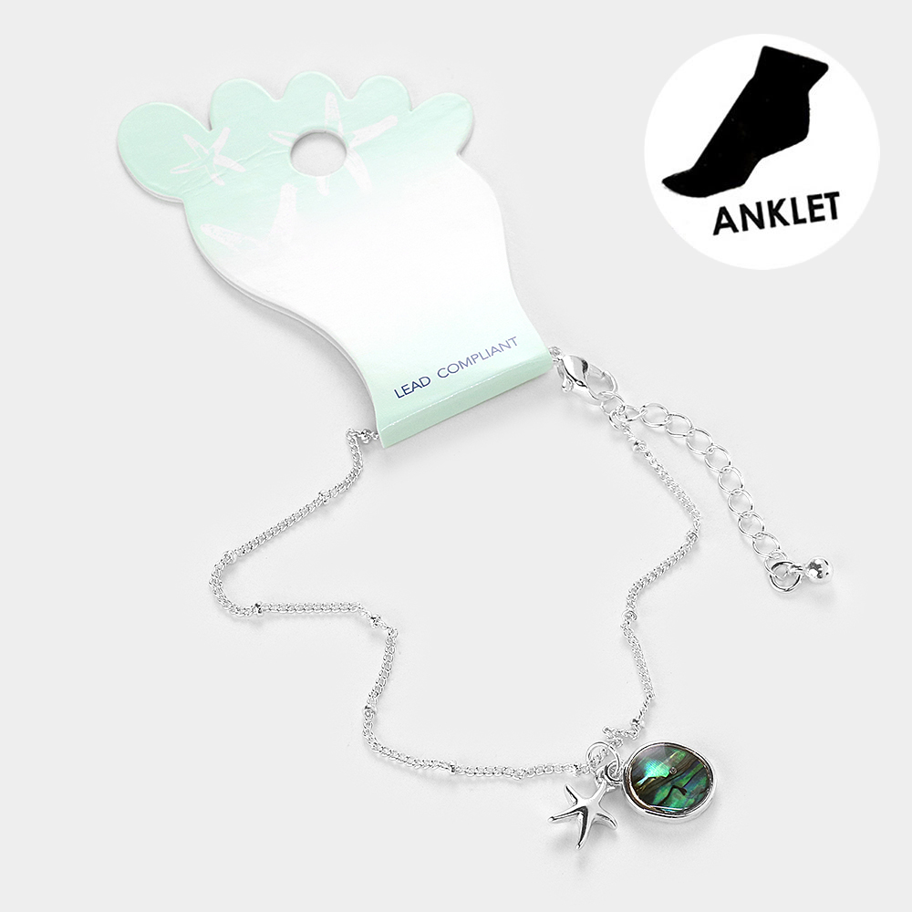 Textured Metal Starfish Charm Accent Resin Pebble Beaded Stretch Bracelet