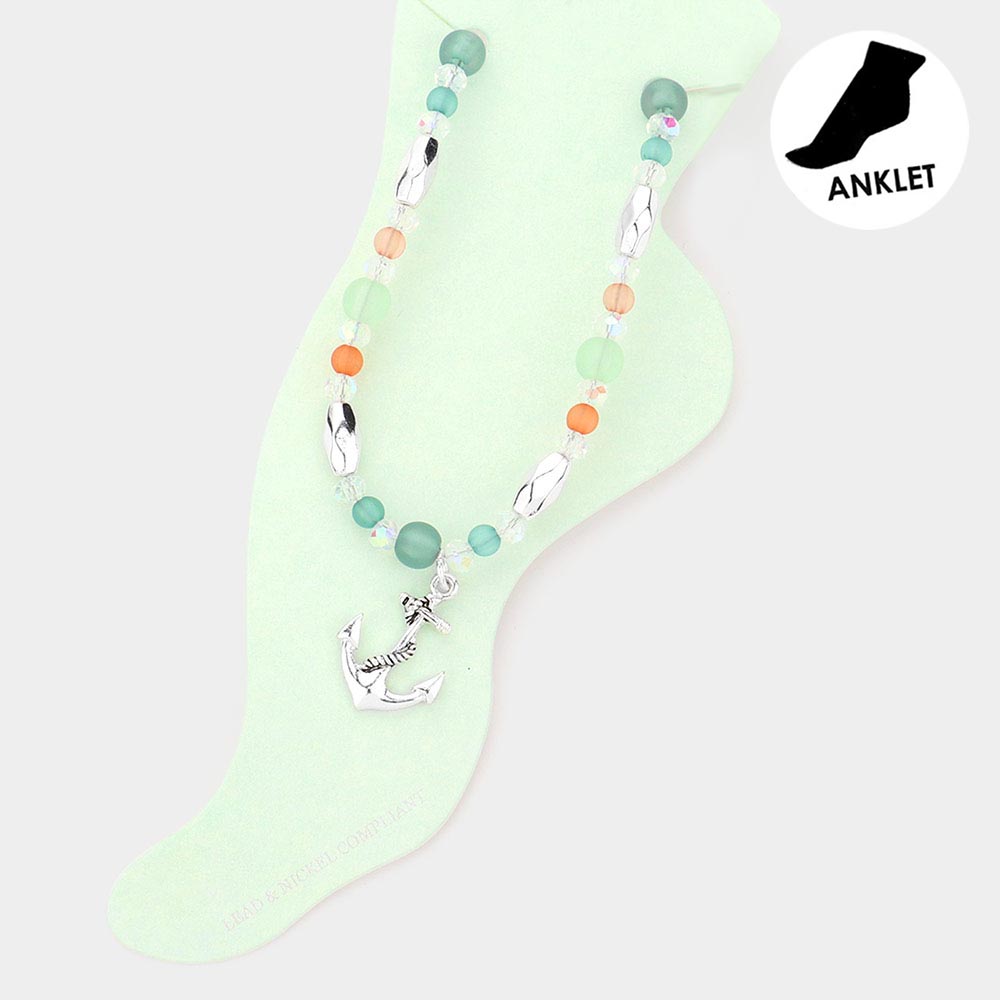 2PCS - Anchor Accented Enamel Round Split Metal Mixed Ring Set