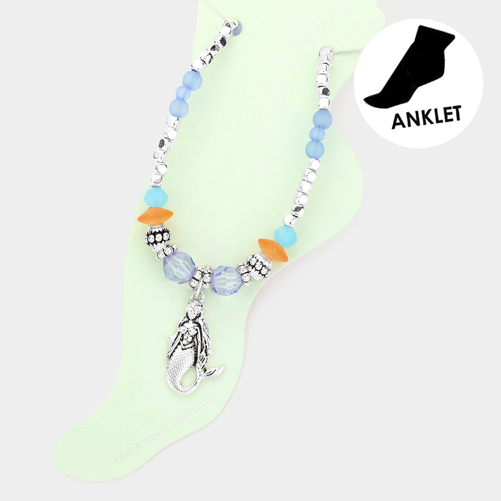 Antique Metal Mermaid Charm Beaded Anklet
