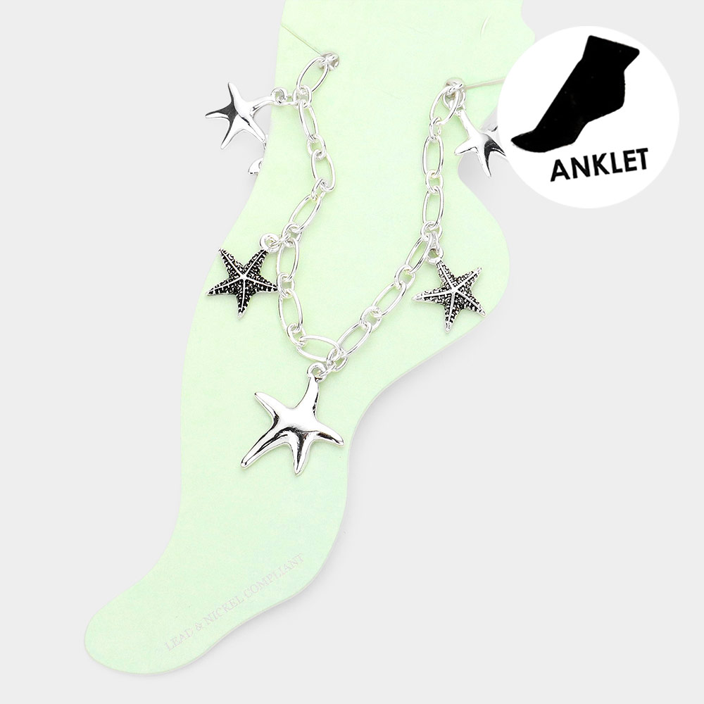 Metal Starfish & Sand Dollar Link Magnetic Bracelet