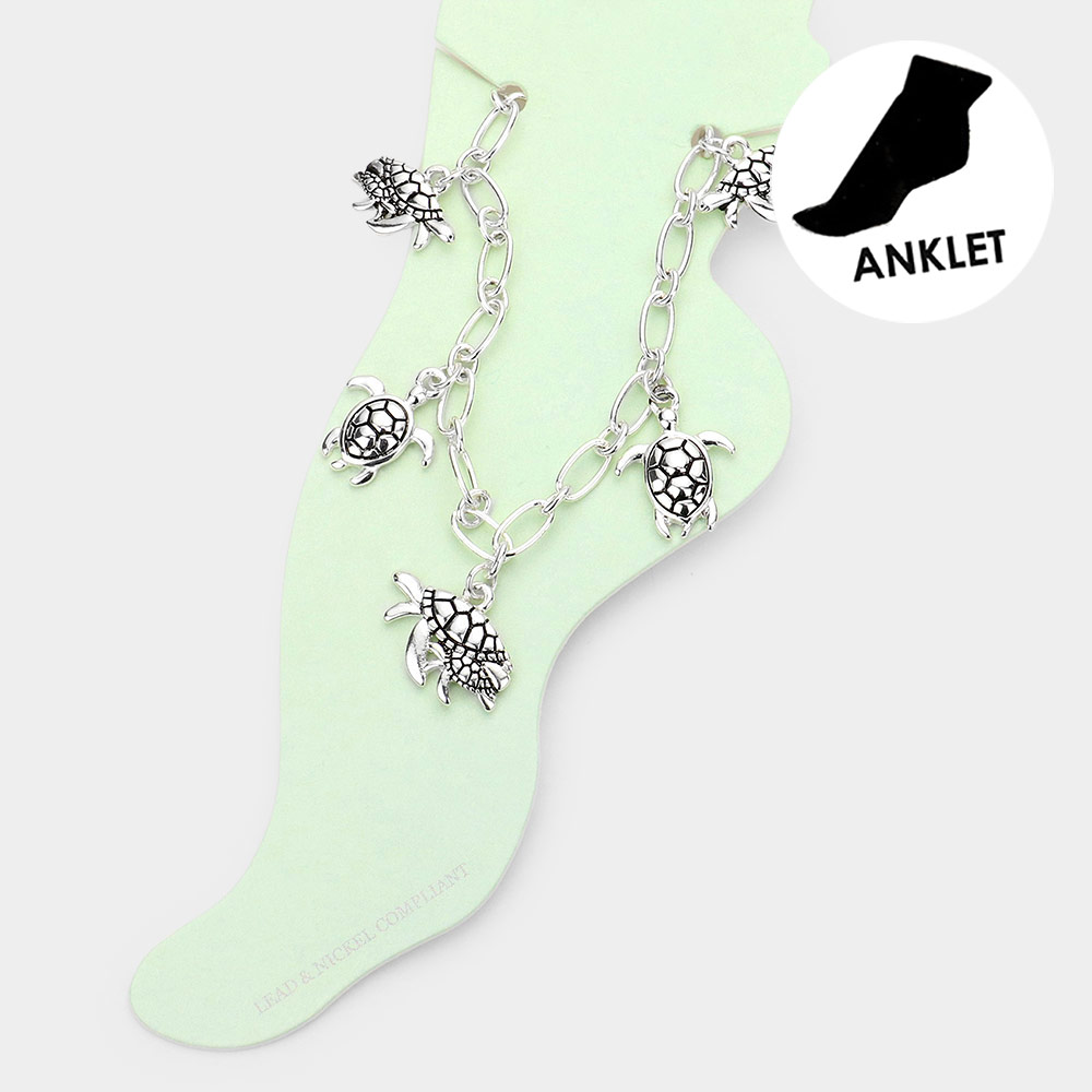 Antique Metal Turtle Charm Station Anklet
