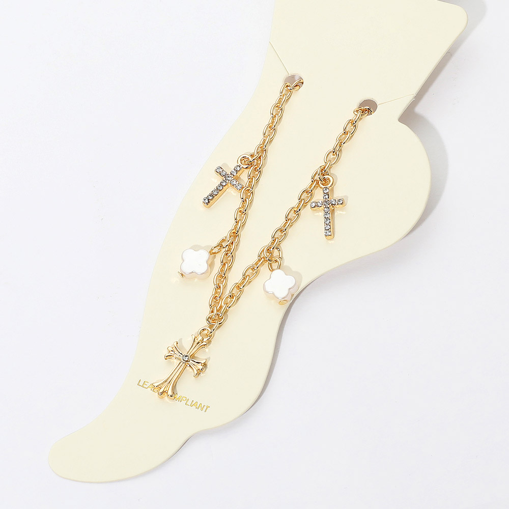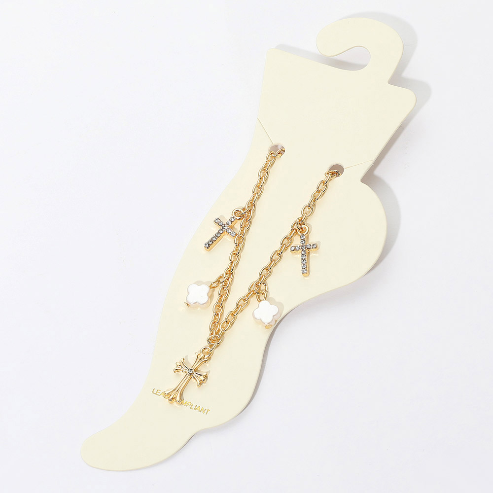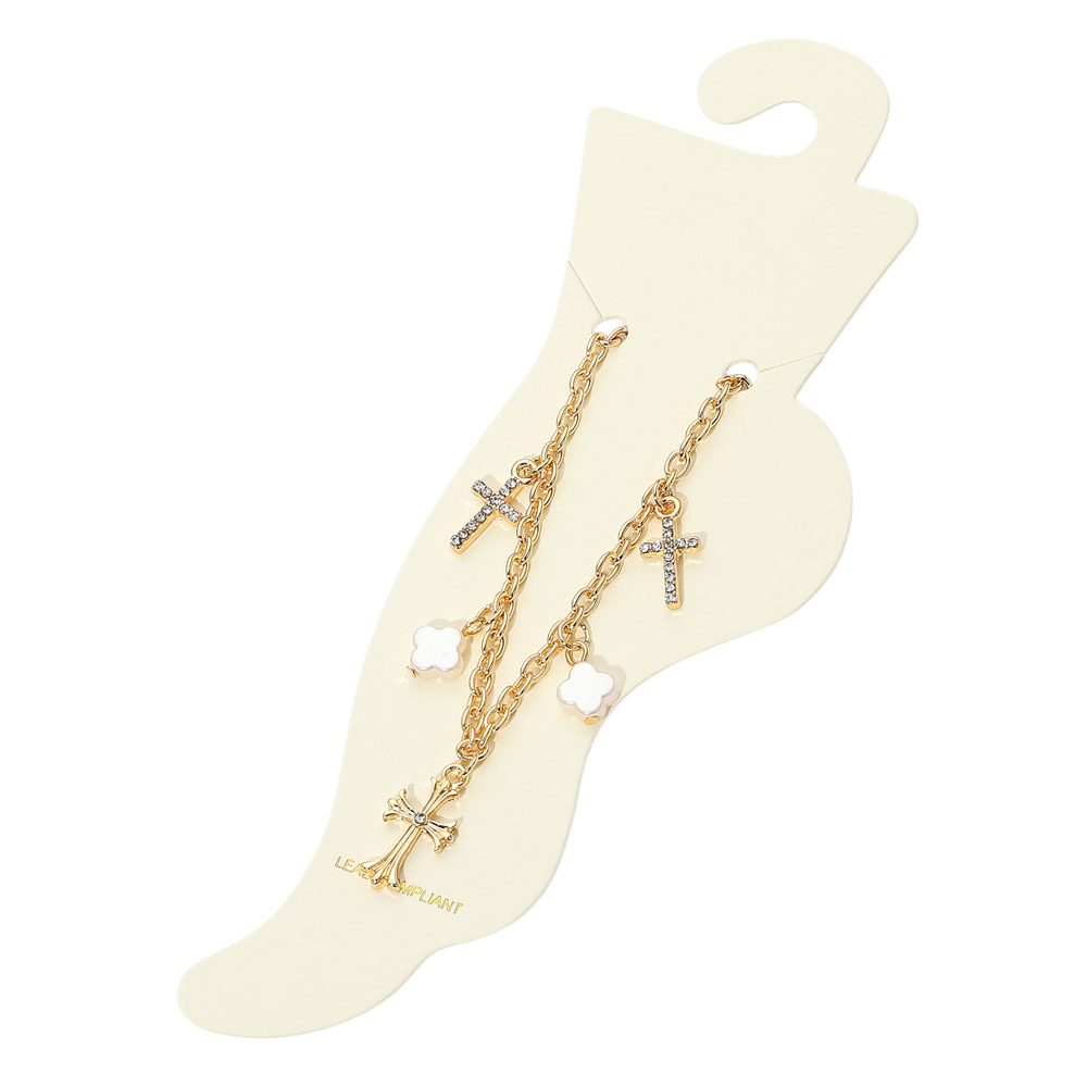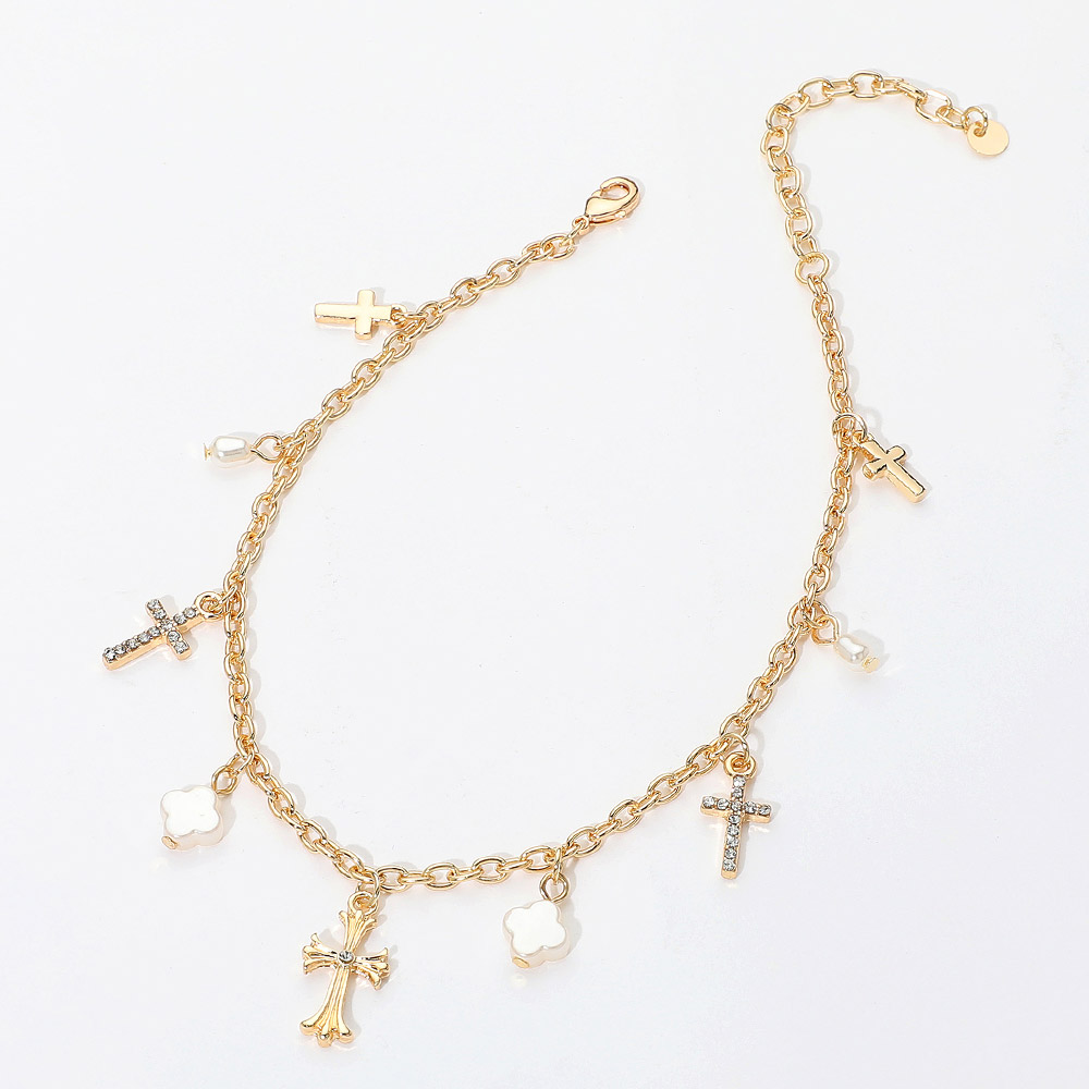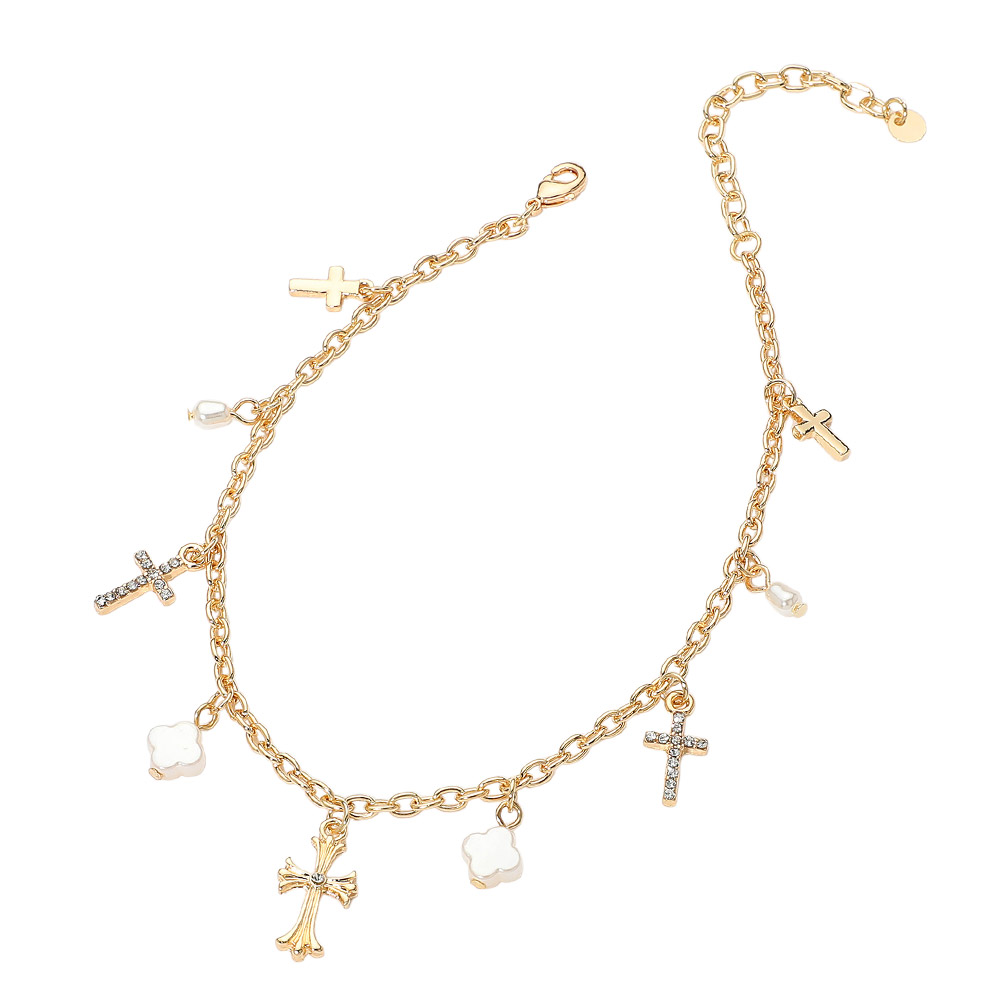Hammered Cross Coin Cluster Pointed Stretch Bracelet