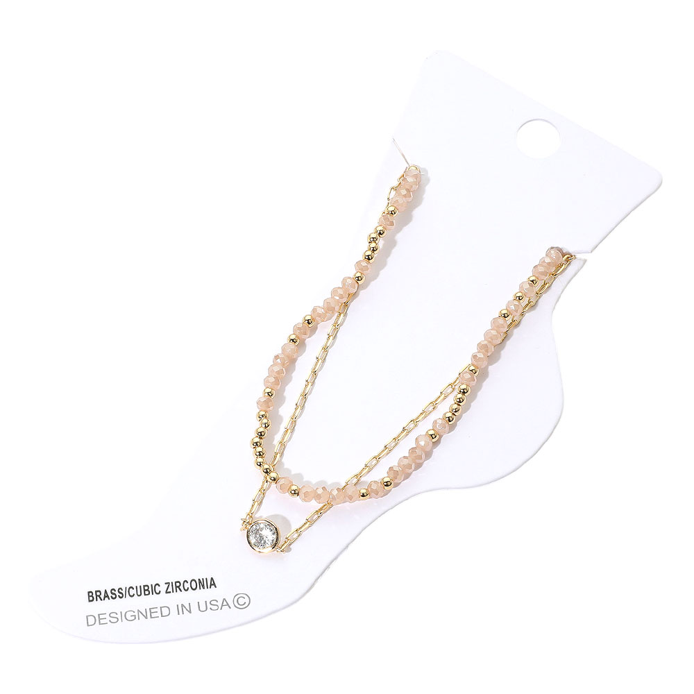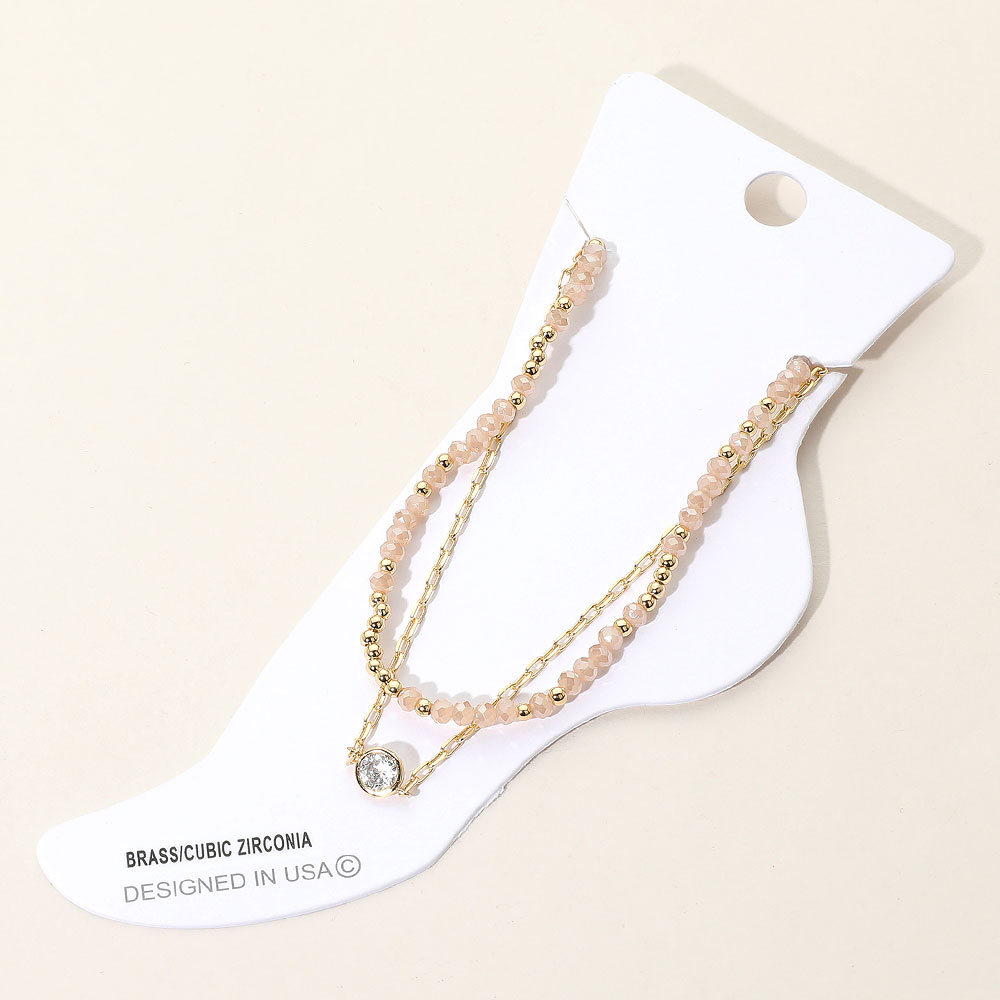 CZ Stone Bezel Accent Paperclip Chain Faceted Beaded Layered Anklet