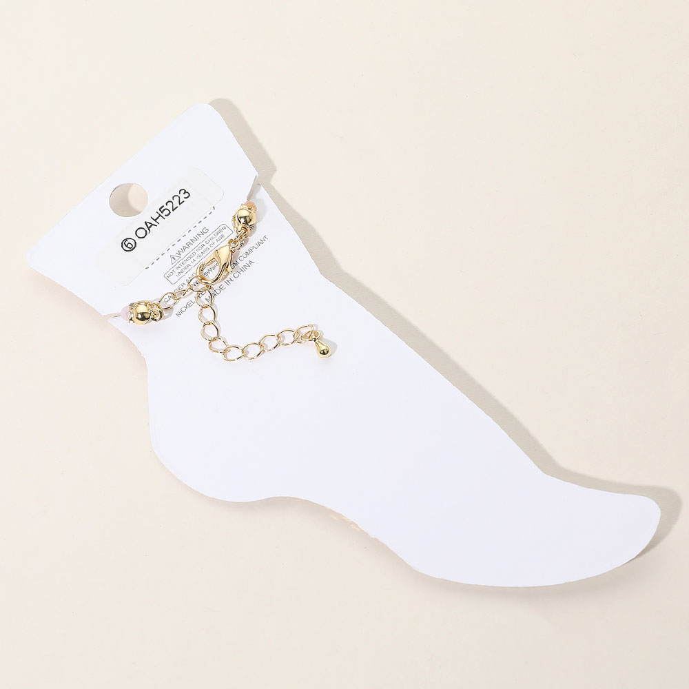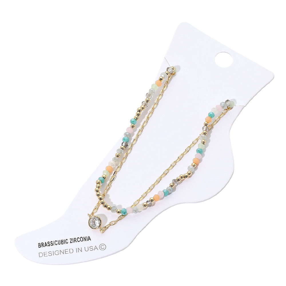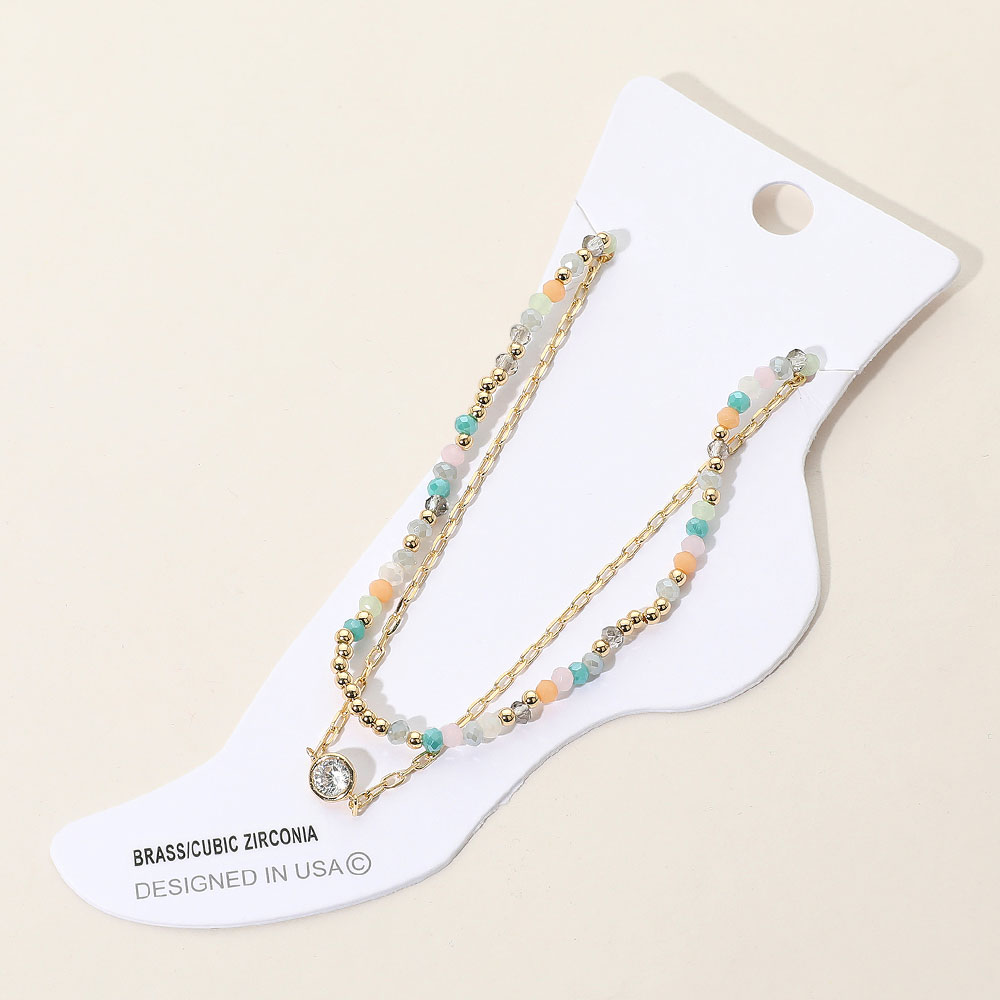 CZ Stone Bezel Accent Paperclip Chain Faceted Beaded Layered Anklet