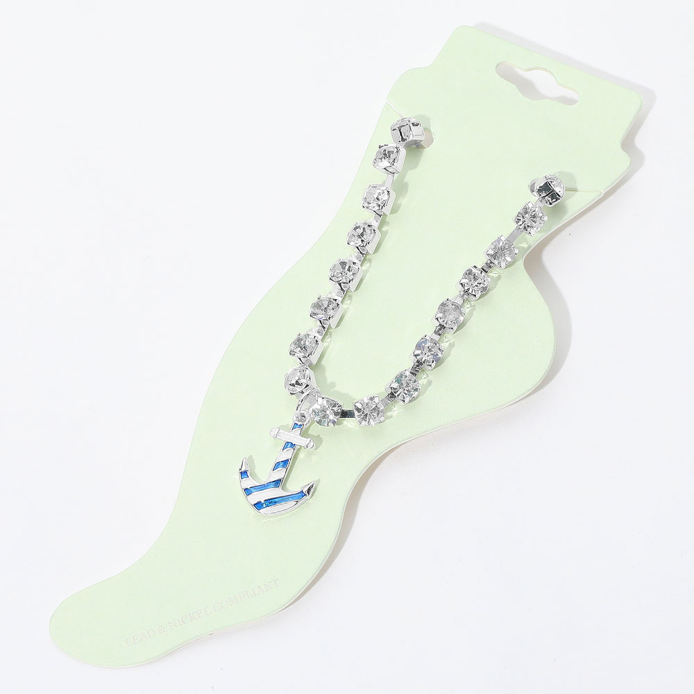 Rhinestone Embellished Metal Anchor Pendant Long Necklace