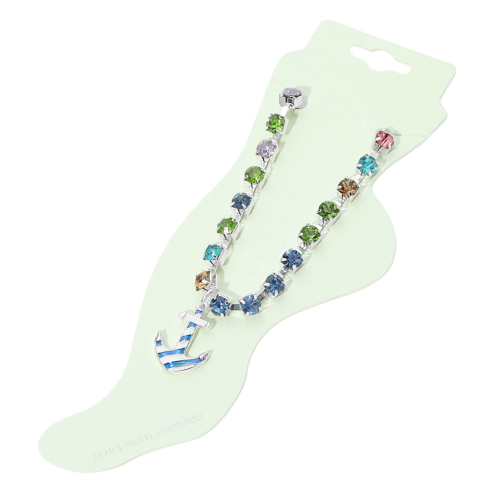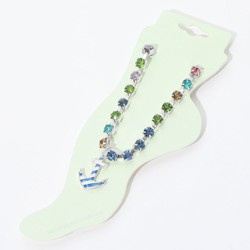Enamel Anchor Charm Round Stone Anklet