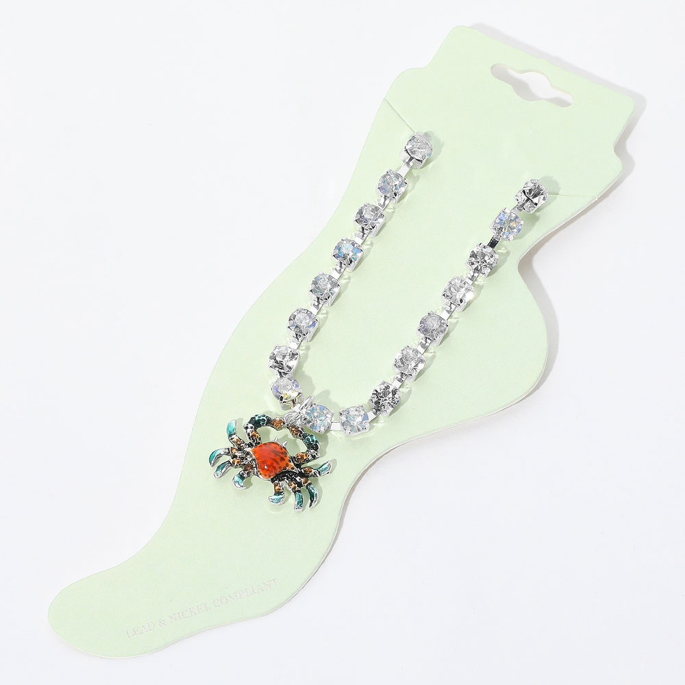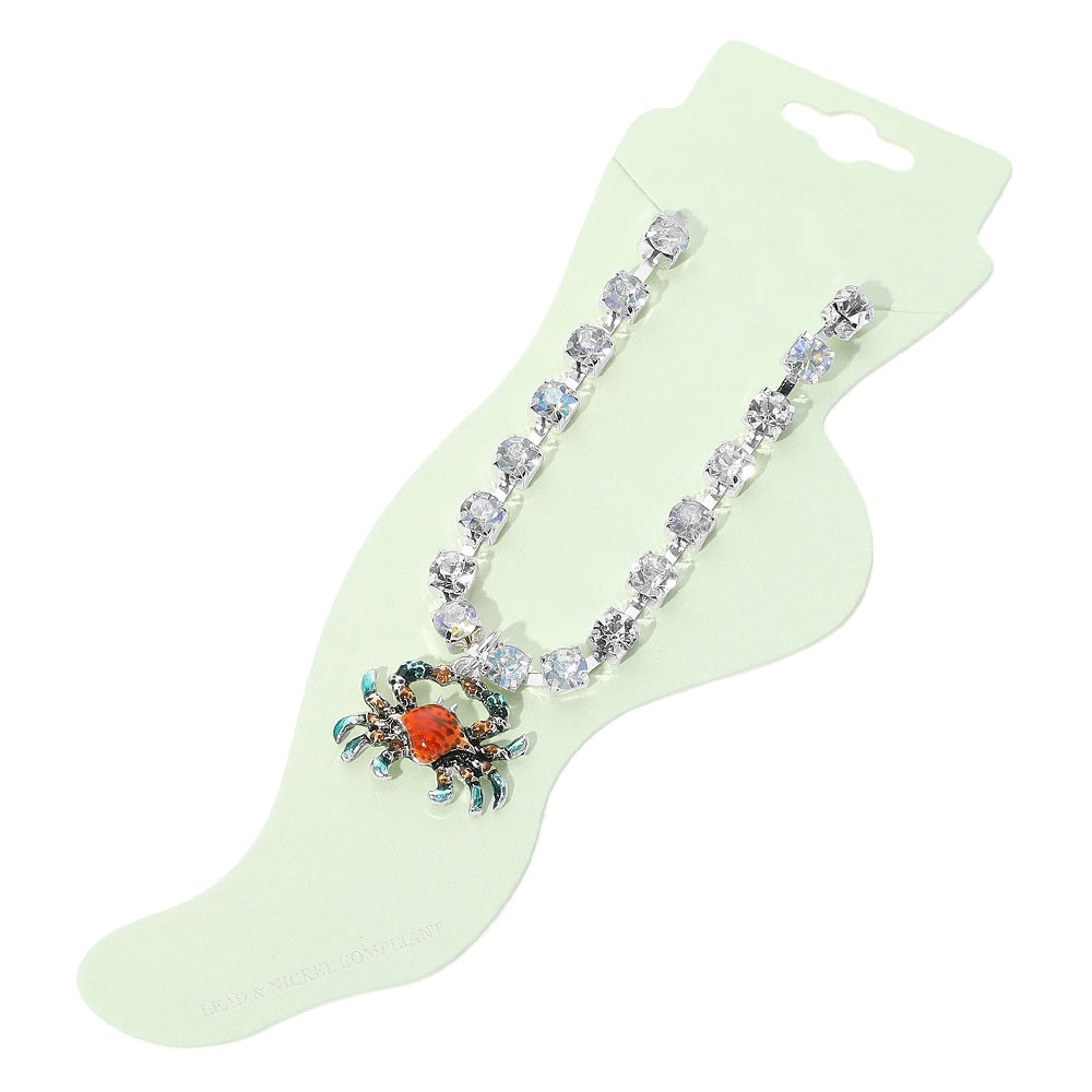 Enamel Crab Charm Round Stone Anklet