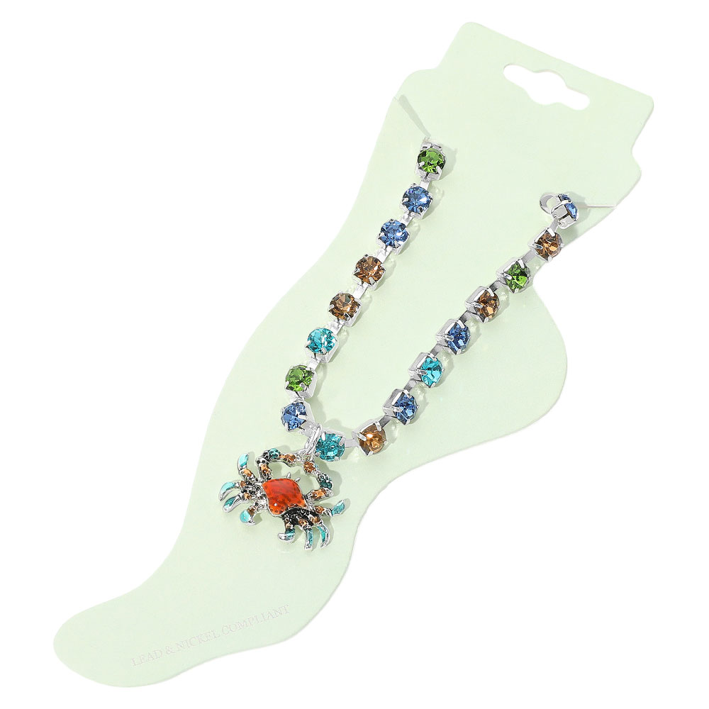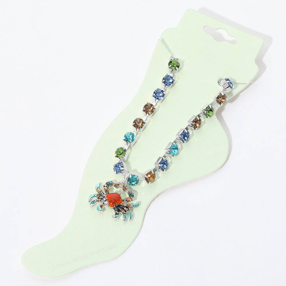 Enamel Crab Charm Round Stone Anklet