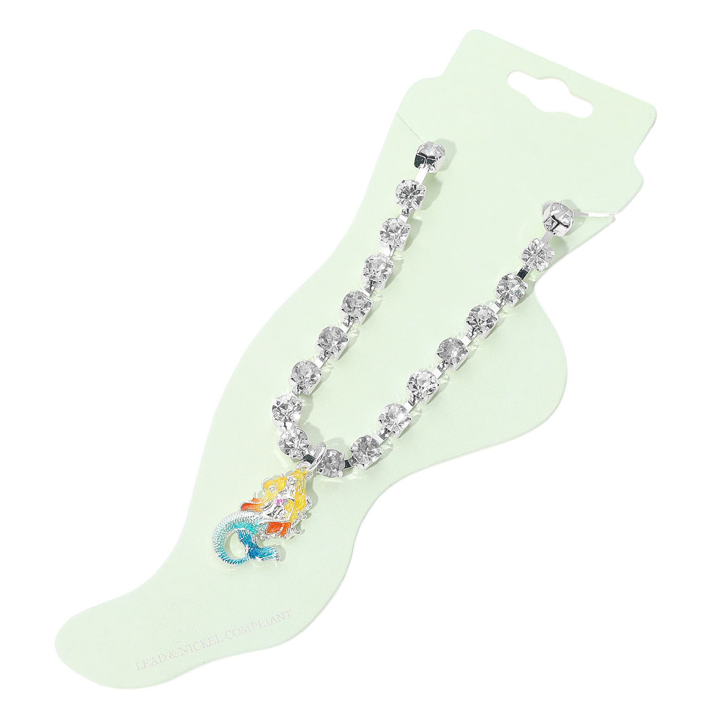 Enamel Mermaid Charm Round Stone Anklet