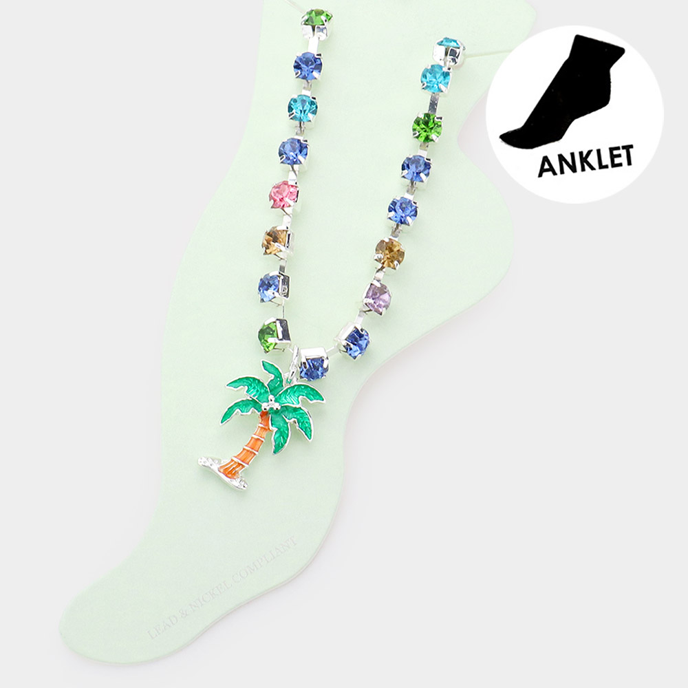 Rhinestone Embellished Enamel Palm Tree Dangle Earrings