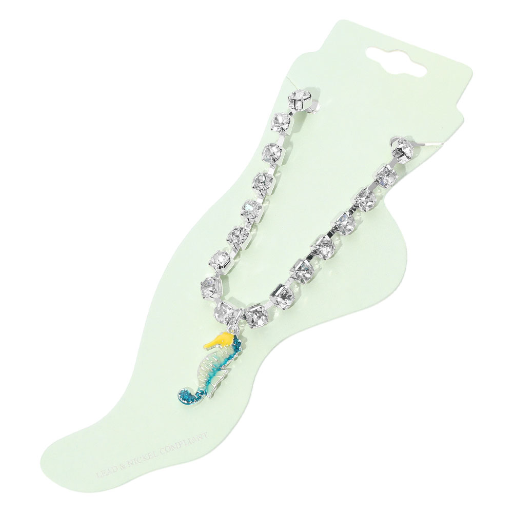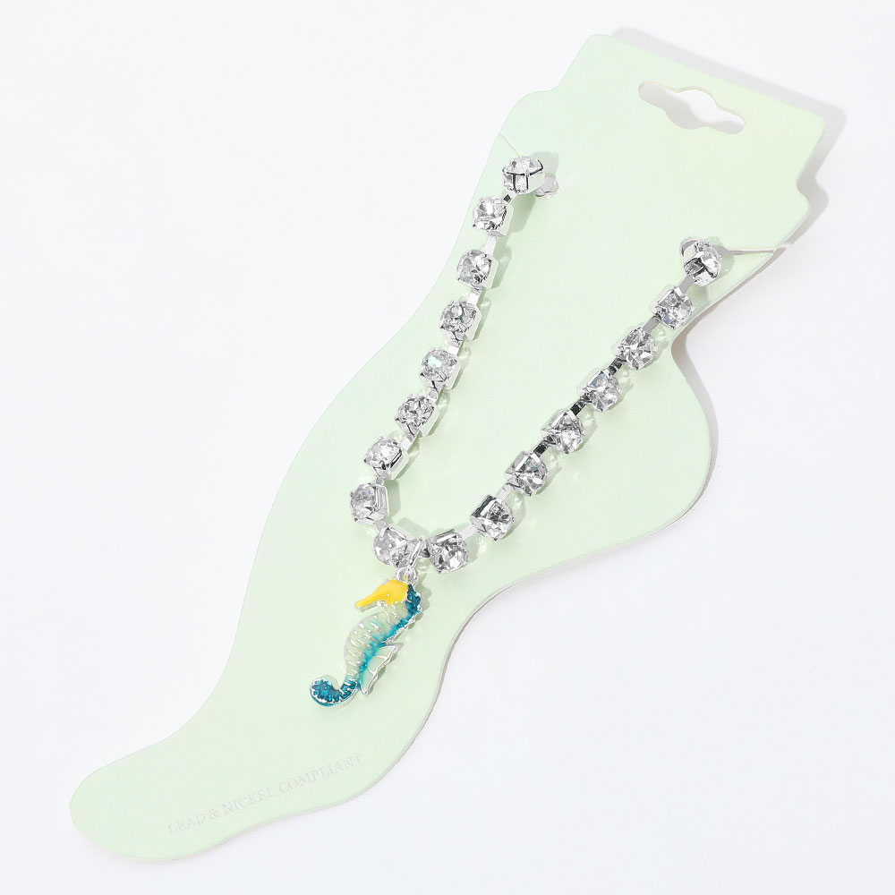 Stone Paved Colored Metal Seashell Faceted Beaded Stretch Bracelet