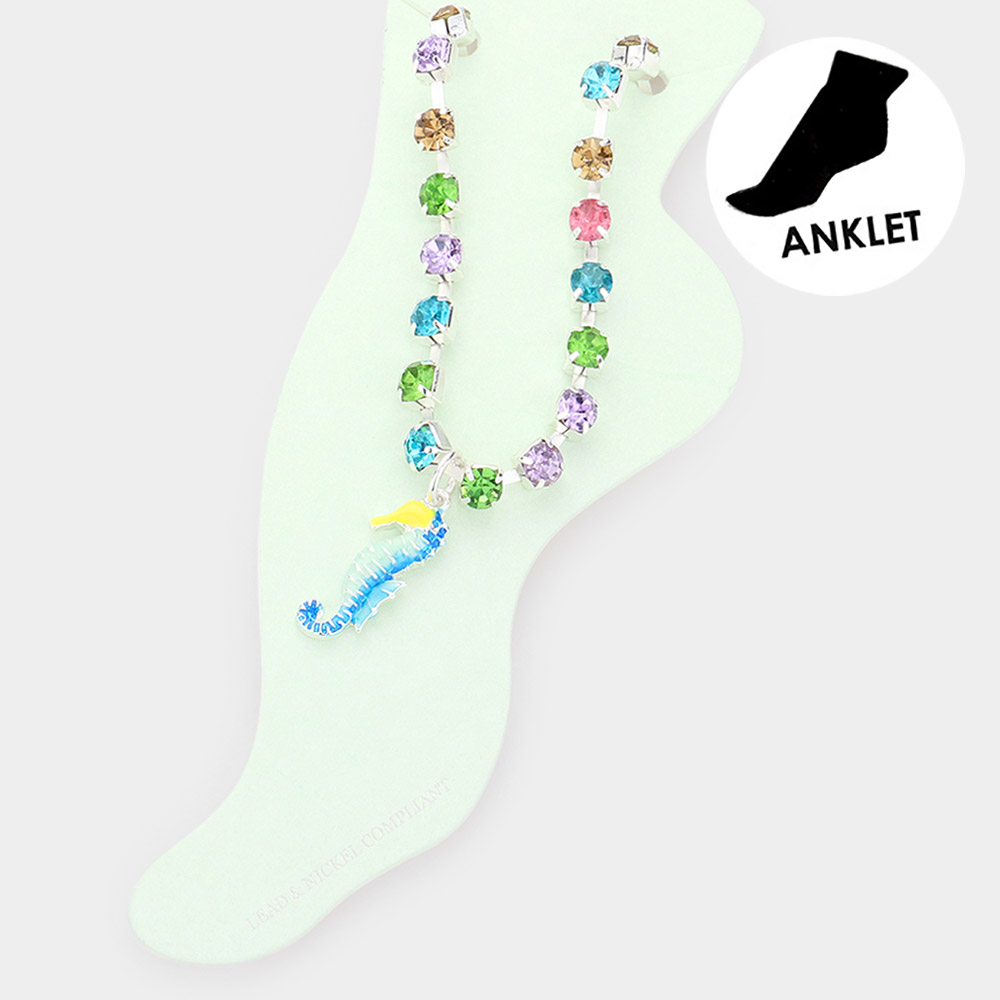Enamel Seahorse Accented Open Teardrop Pendant Set