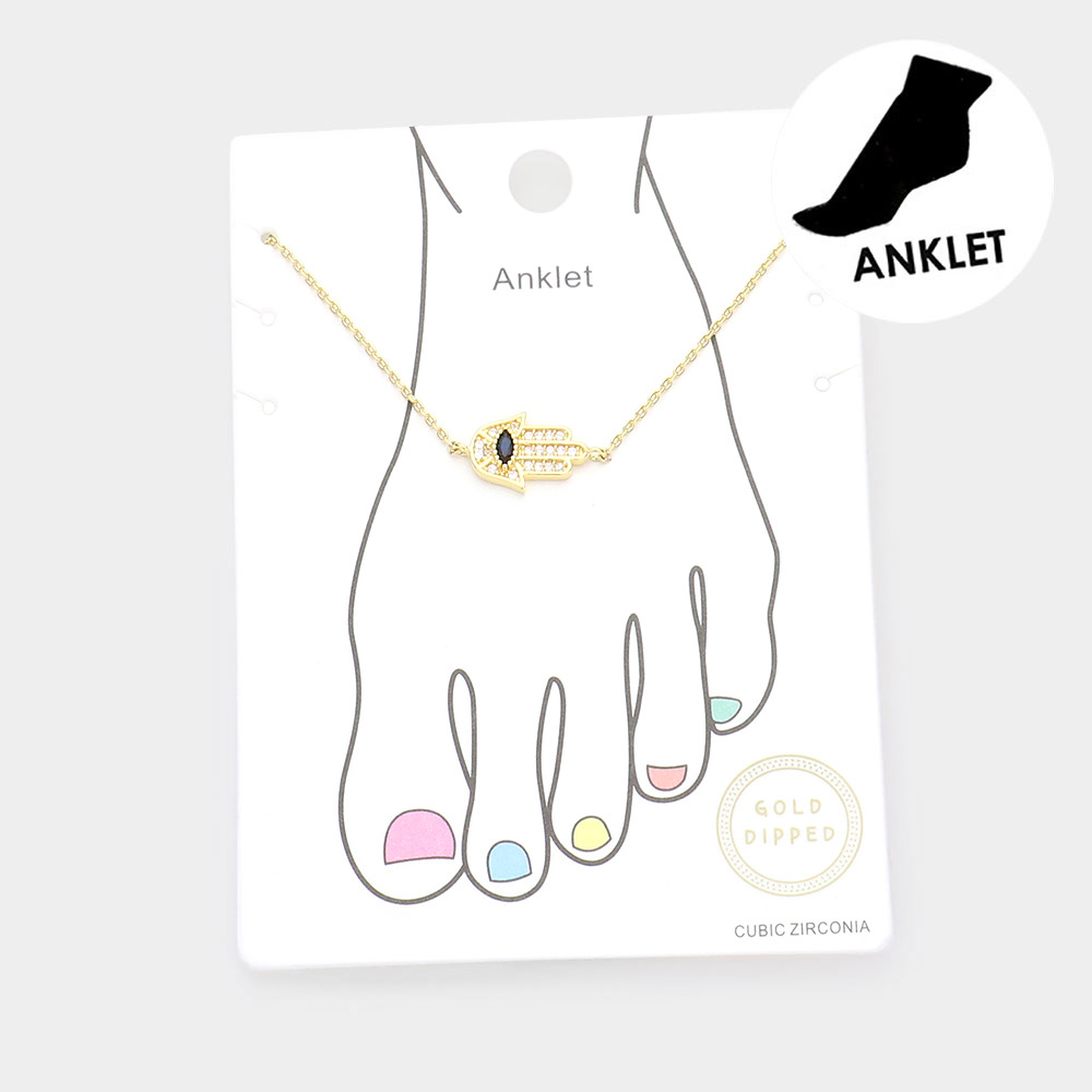 Gold Dipped CZ Embellished Hamsa Hand Charm Anklet Gold Dipped CZ Embellished Hamsa Hand Charm Anklet
