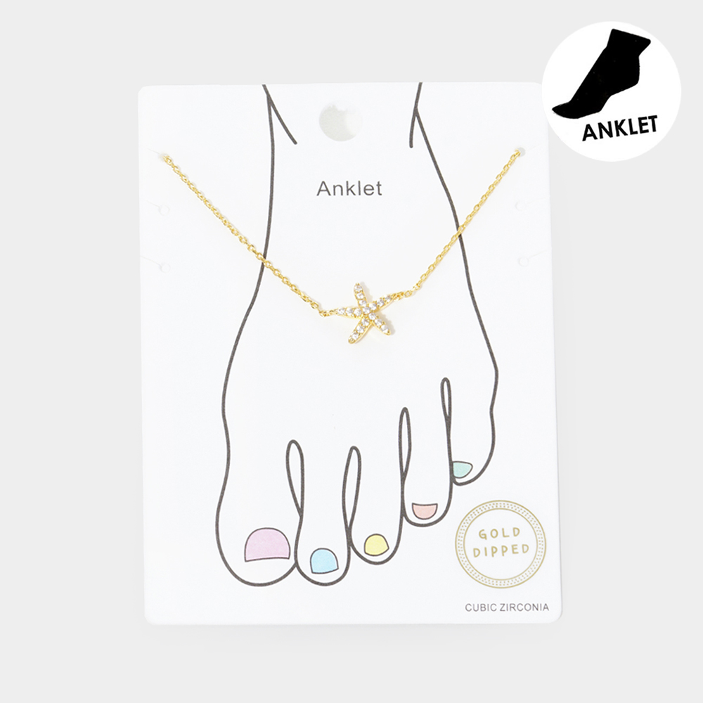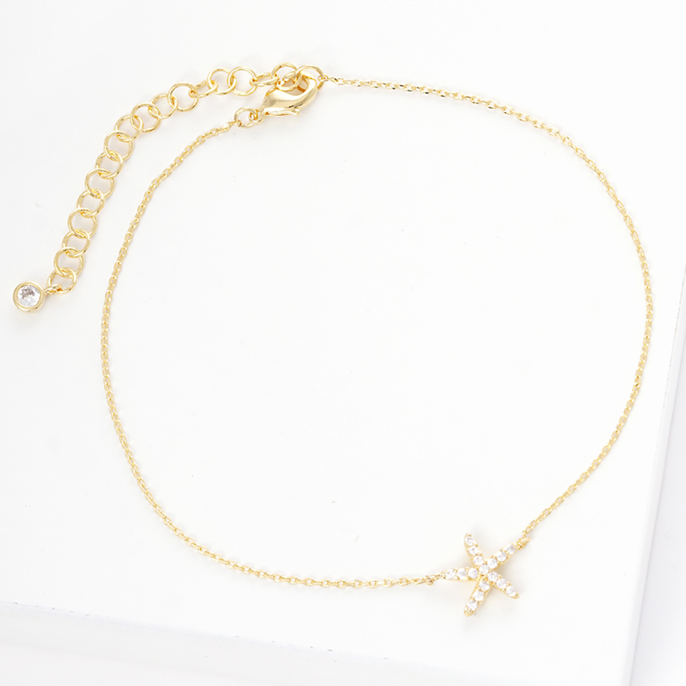 Gold Dipped CZ Starfish Charm Anklet