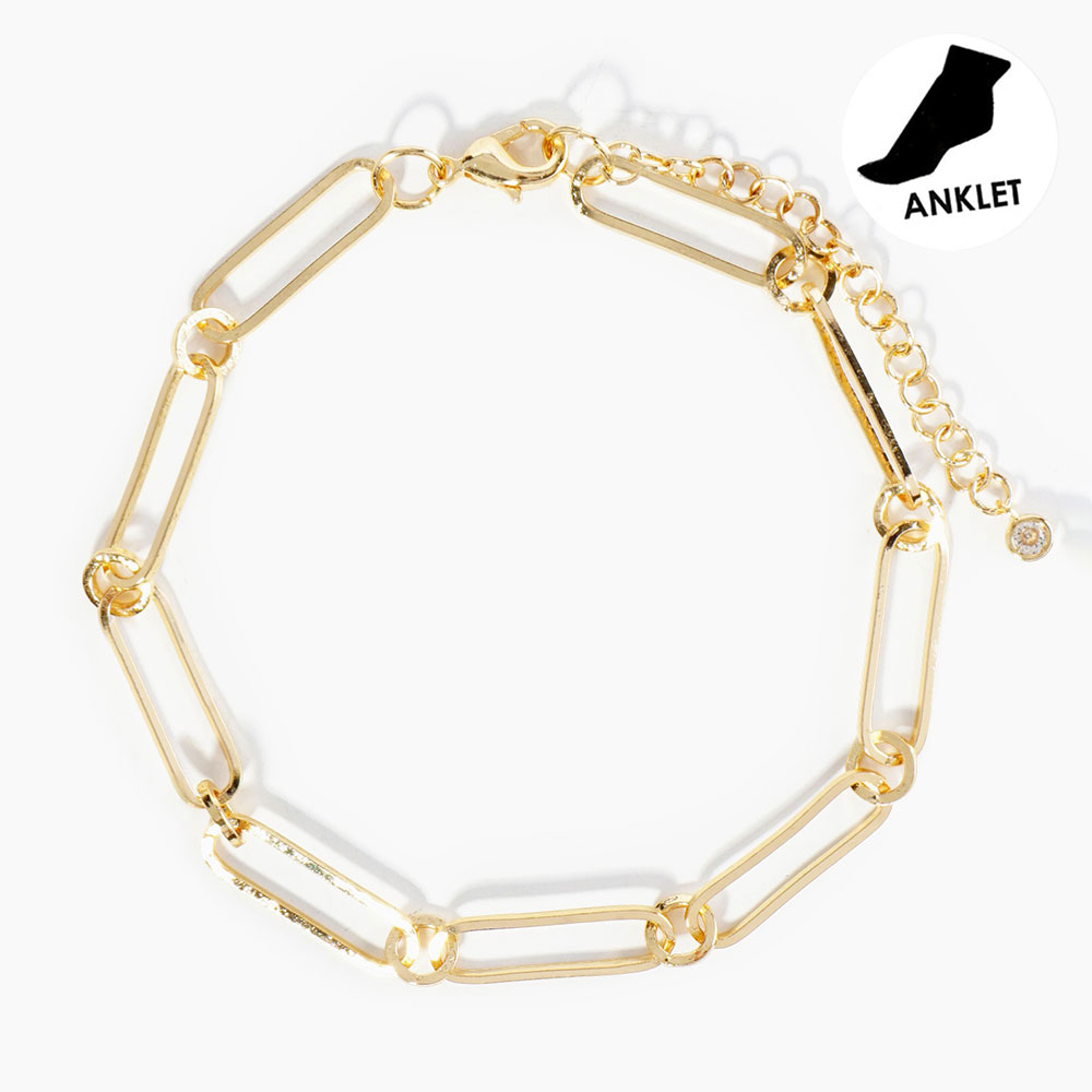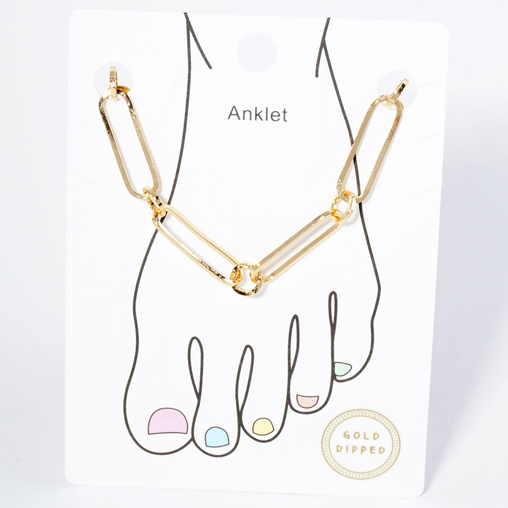 Details • Size : 0.25" H, 9" + 2.5" L • Lobster Clasp Closure • Chic paperclip chain anklet with a sleek, modern design. White gold dipped finish adds a polished touch to your look, perfect for layering or wearing solo for a minimalist statement. • Gold Dipped • Lead and Nickel Compliant • Made In Korea