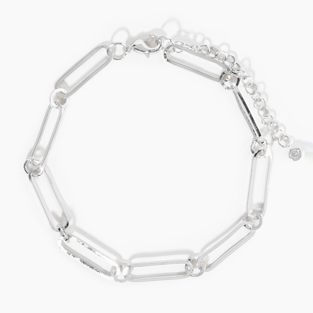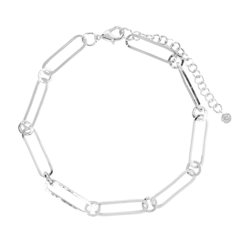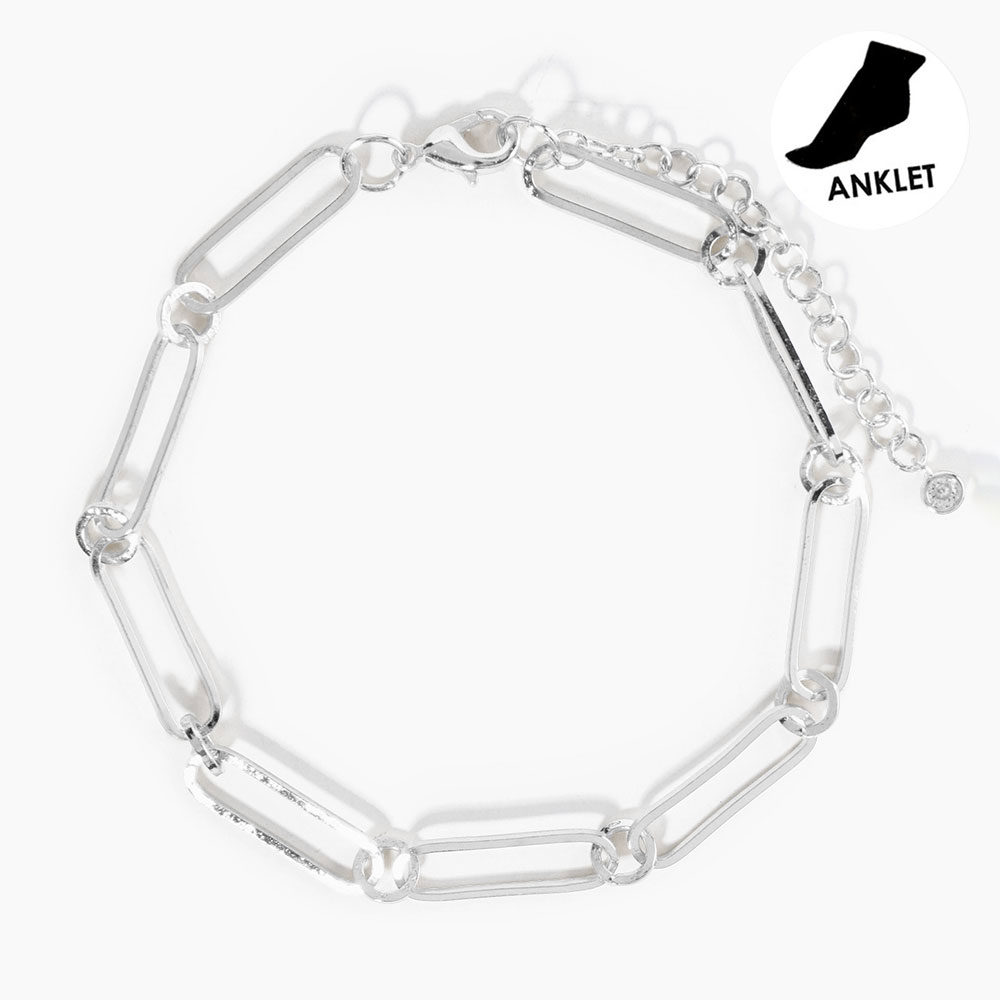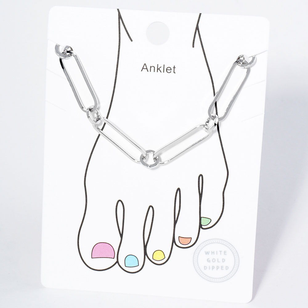 Details • Size : 0.25" H, 9" + 2.5" L • Lobster Clasp Closure • Chic paperclip chain anklet with a sleek, modern design. White gold dipped finish adds a polished touch to your look, perfect for layering or wearing solo for a minimalist statement. • Gold Dipped • Lead and Nickel Compliant • Made In Korea