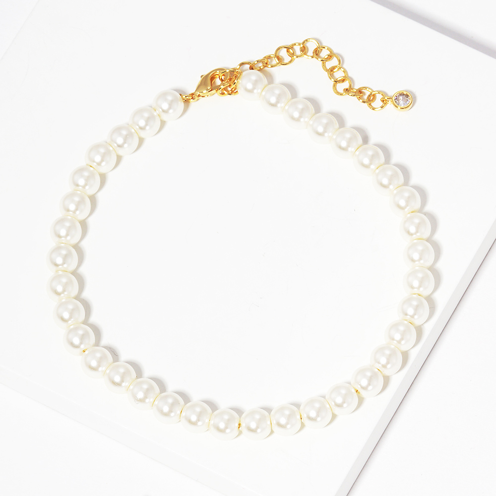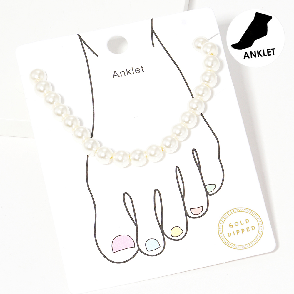 Details • Size : 0.25" H, 8.5" + 2.5" L • Lobster Clasp Closure • Step into timeless style with this gold dipped anklet featuring a strand of delicate pearl-like beads. Lightweight and refined, it adds a touch of grace to both everyday outfits and special occasions. A chic accessory perfect for barefoot elegance or dressy sandals. • Lead and Nickel Compliant • Made In Korea • Gold Dipped